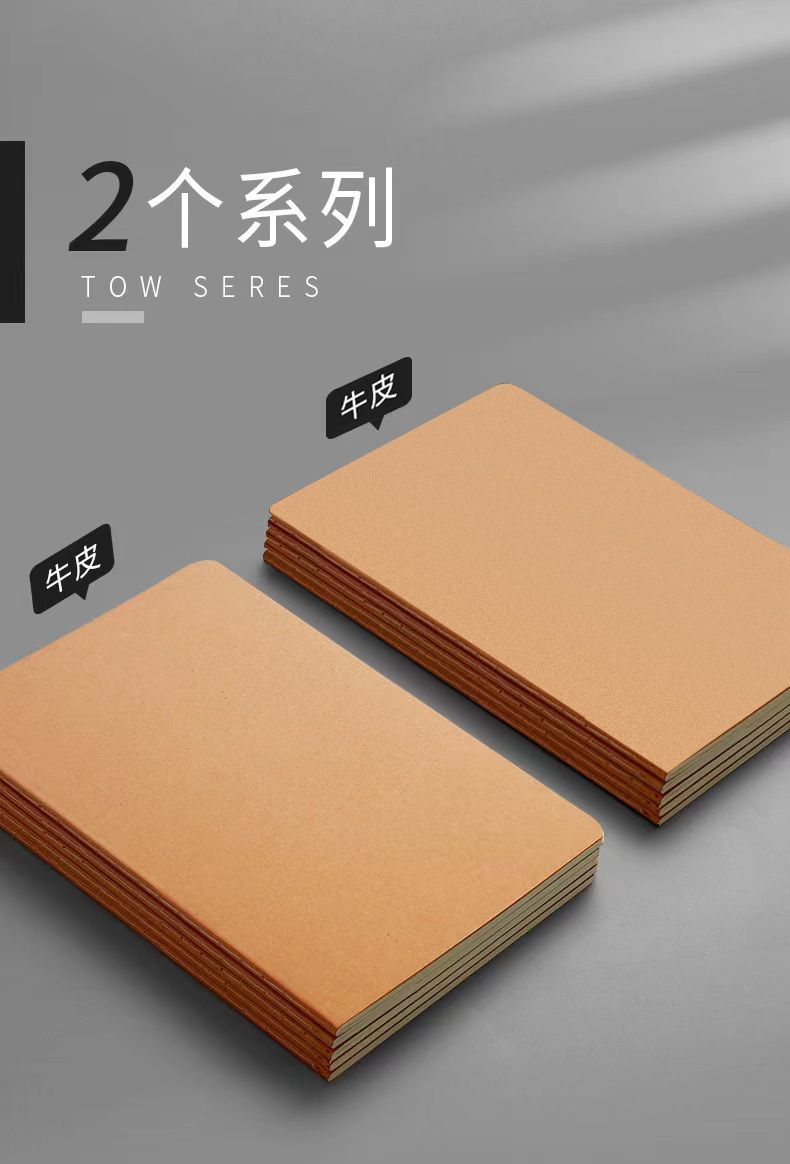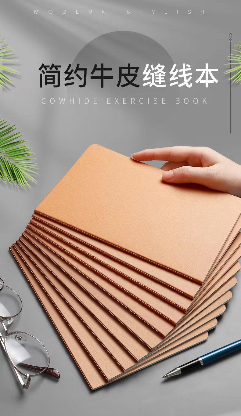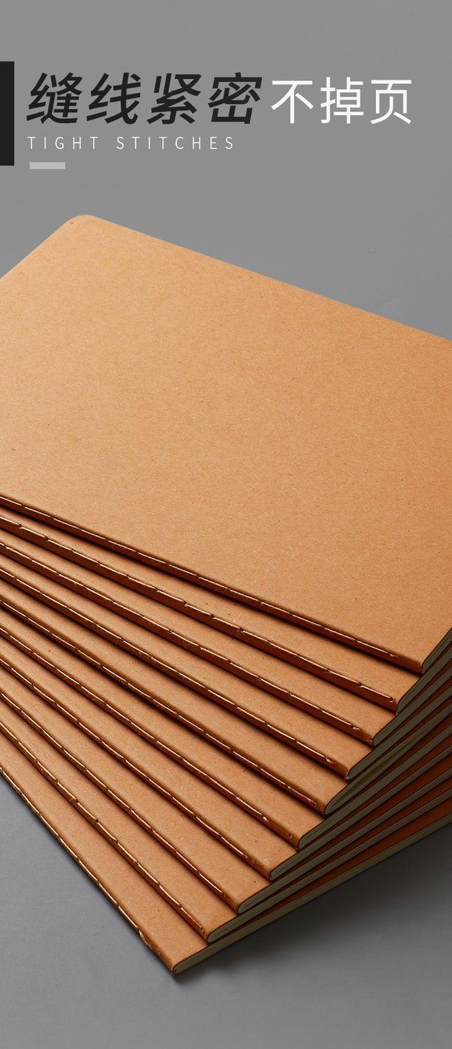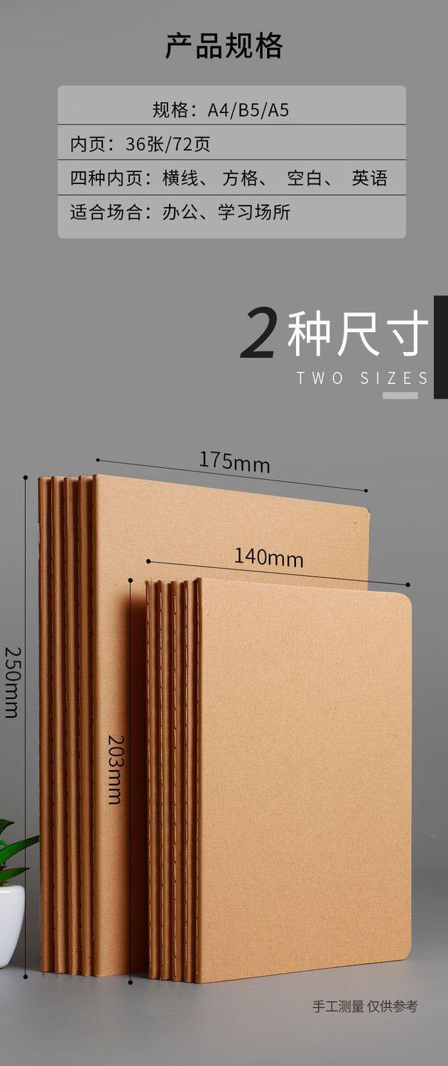 Cuaderno de papel kraft grueso B5, bloc de notas A5 para estudiantes universitarios, diseño retro con costuras simples, líneas horizontales y cuadrados en blanco.