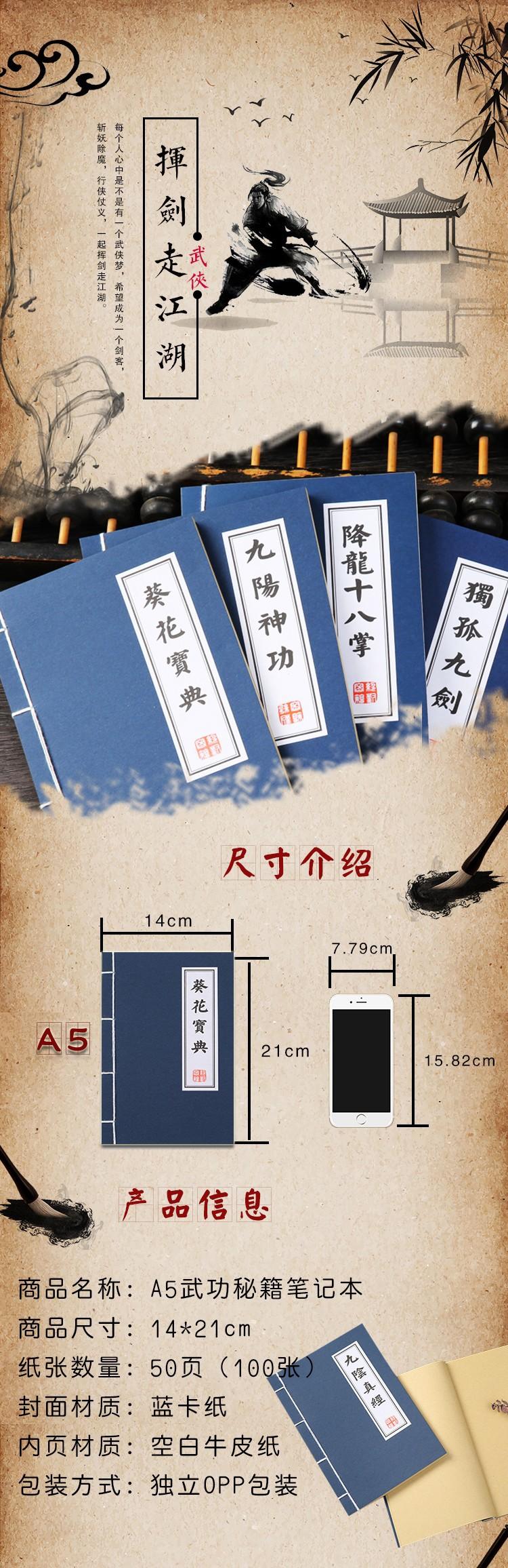 Libreta A5 Literatura Secreta Wulin Hecha a Mano Encuadernada con Hilo Papelería Creativa Artes Marciales Retro Diario Cuaderno de Estudiante Premio