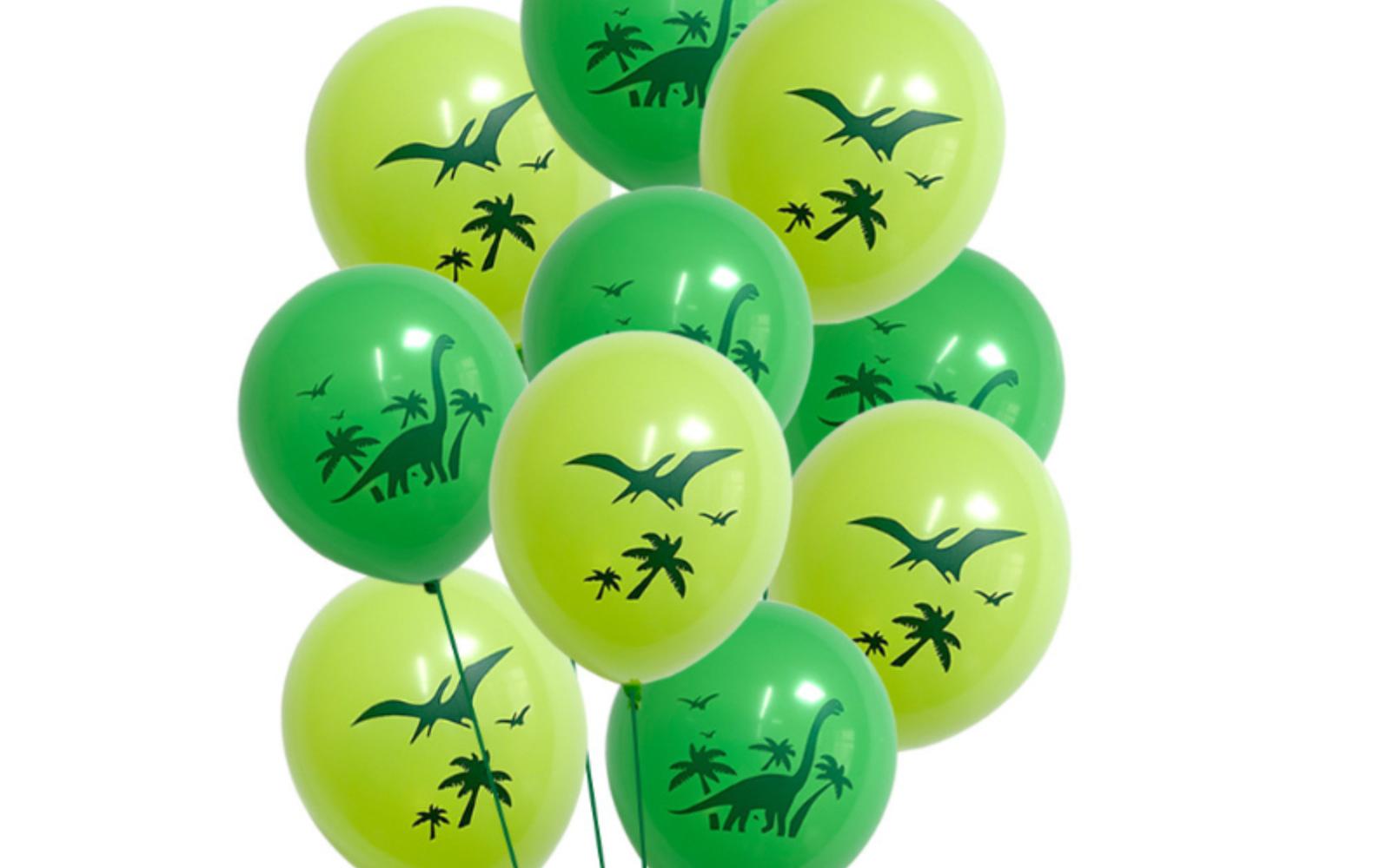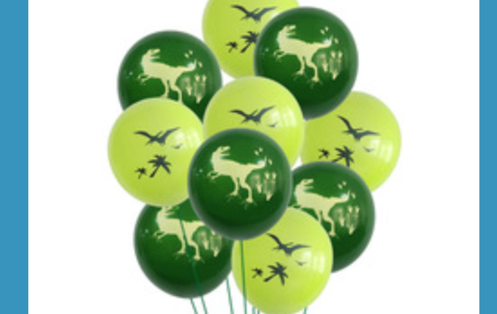 Globo de látex de dinosaurio de tamaño 12 de Amazon, decoración para fiesta de cumpleaños en la jungla, lentejuelas transparentes de látex.
