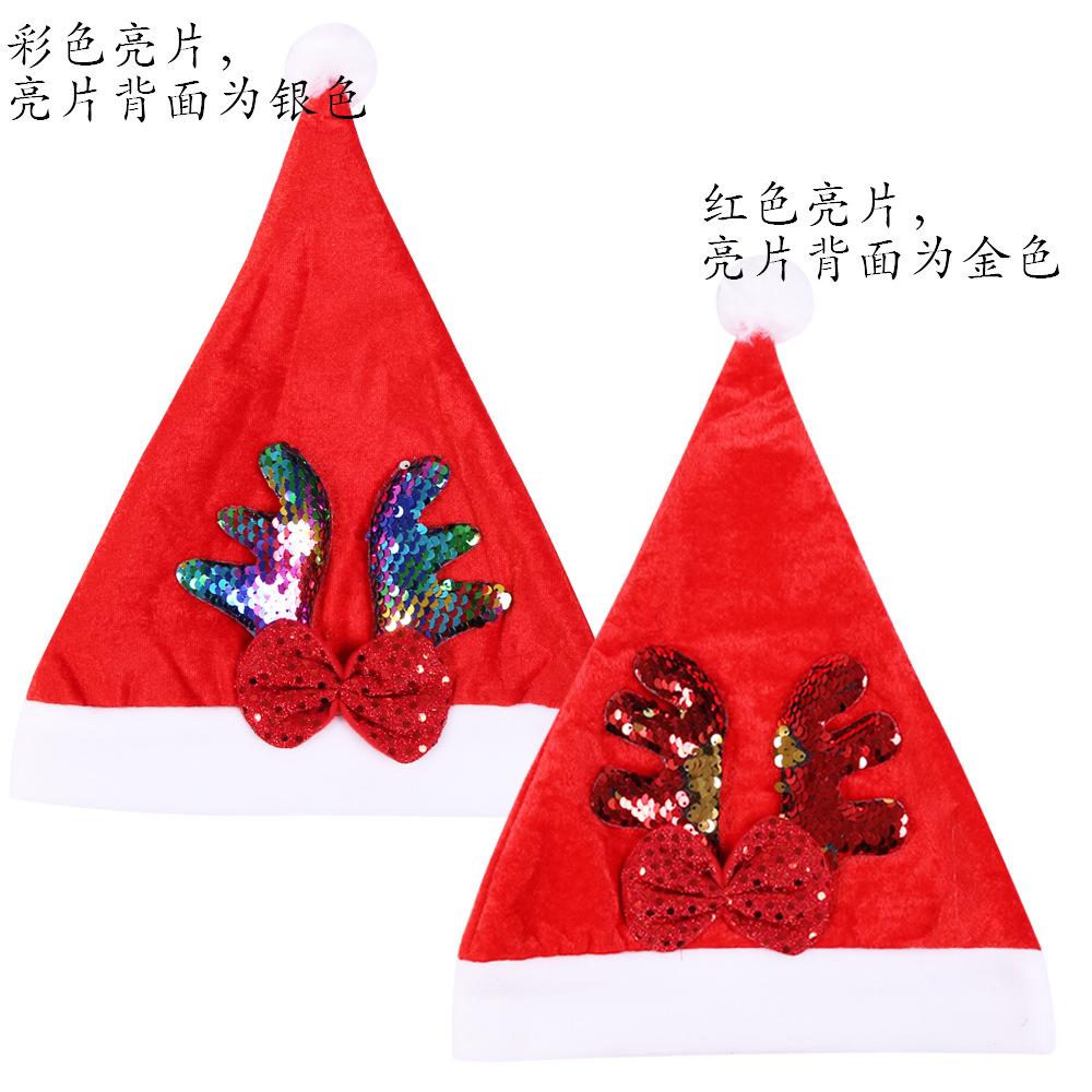 Sombrero de Navidad rojo con lentejuelas reversibles sombrero decoraciones navideñas sombrero de astas sombrero de Navidad para adultos niños venta al por mayor