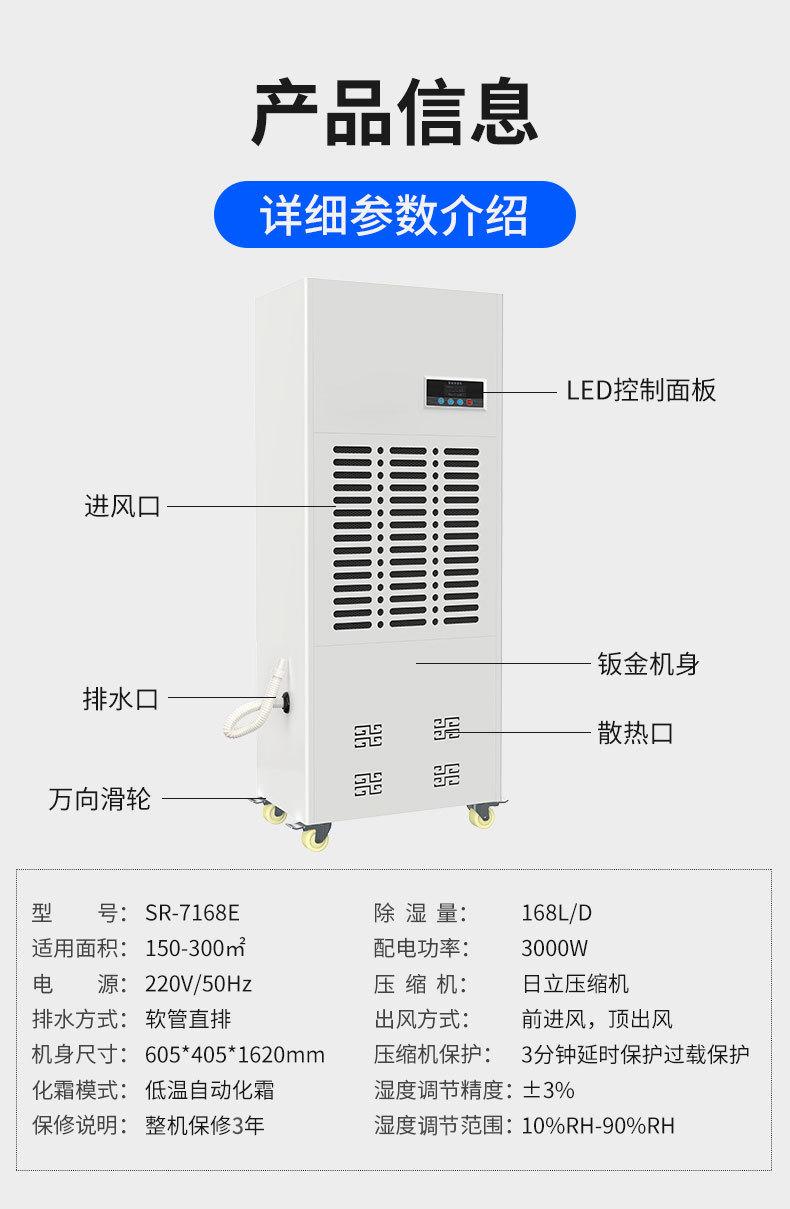 Deshumidificador Industrial Wet-Rui para Almacenes, Talleres, Salas de Distribución de Energía, Sótanos, 168L Dispositivo Especial de Deshumidificación y Absorción de Humedad