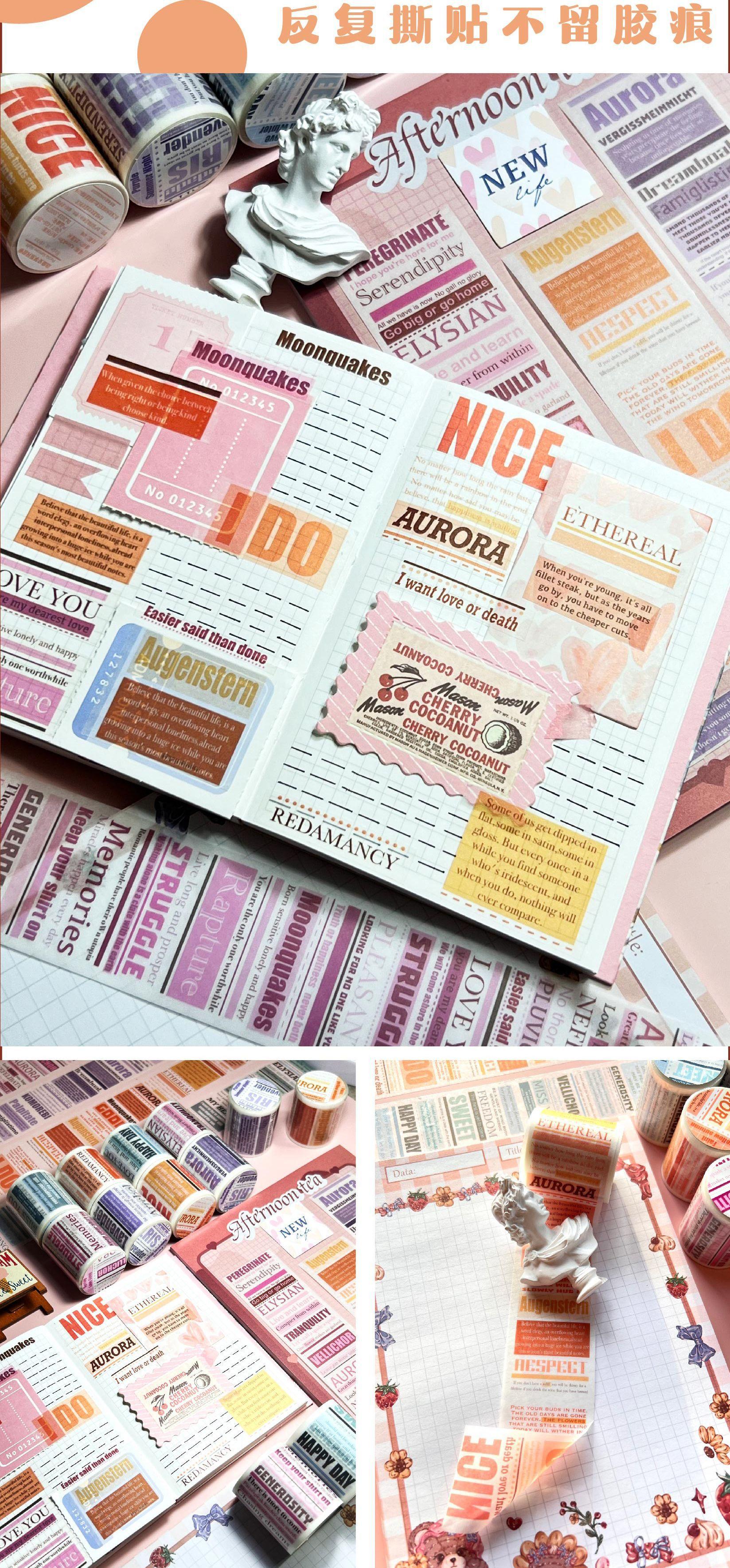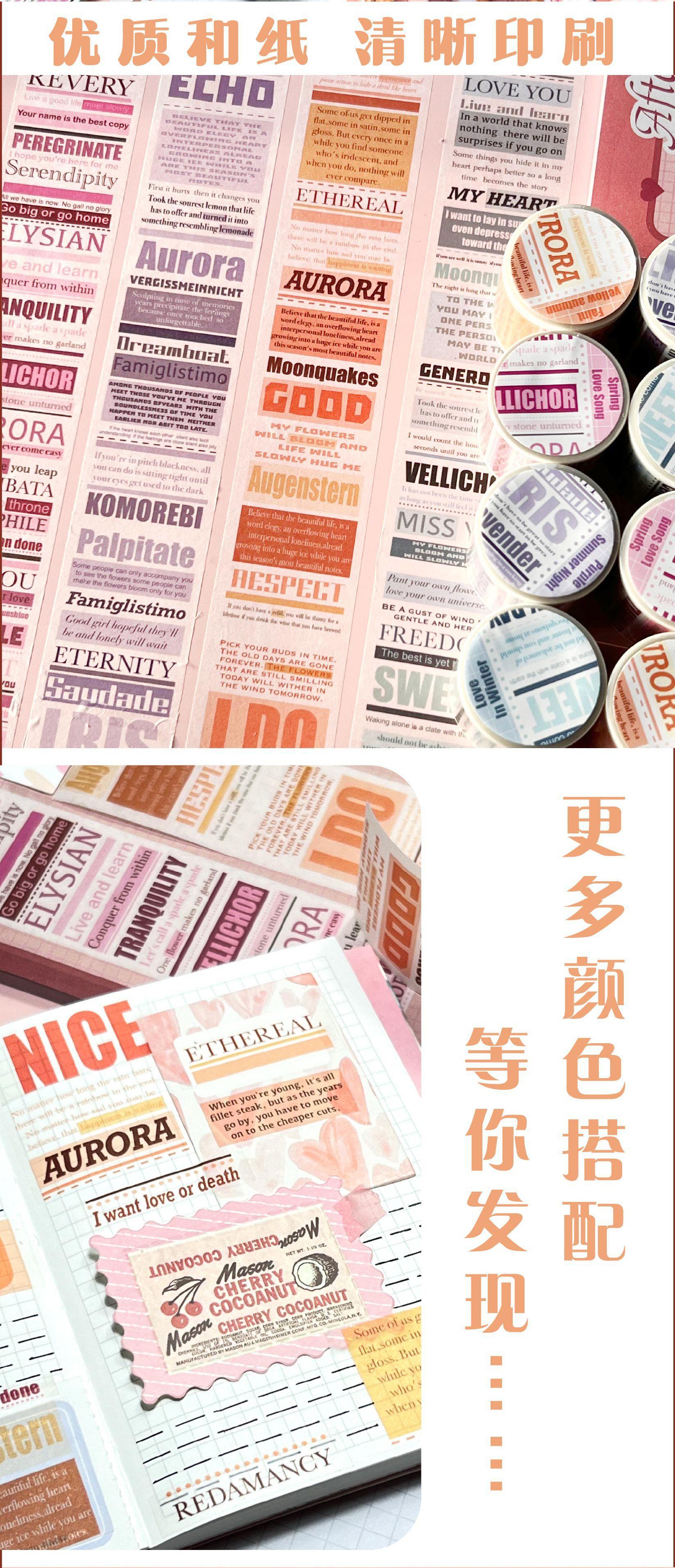 Cinta adhesiva para manualidades Senyou Simple Department English Hand Accounting para estudiantes, regalos, papel con texto, cinta adhesiva para manualidades