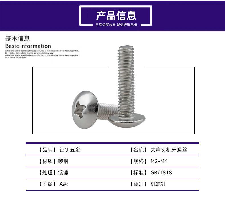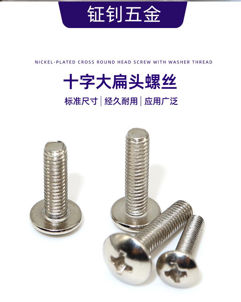Tornillo de máquina de cabeza plana grande TM niquelado M2M2.5M3M4M5M6, tornillo de cabeza de hongo cruzada, directo de fábrica, acero al carbono