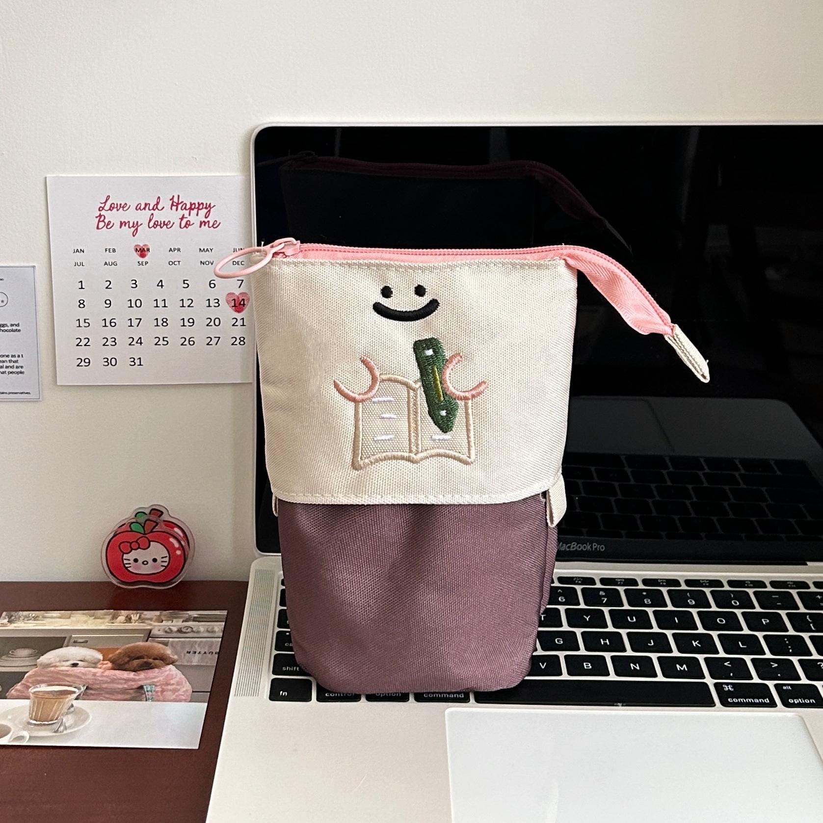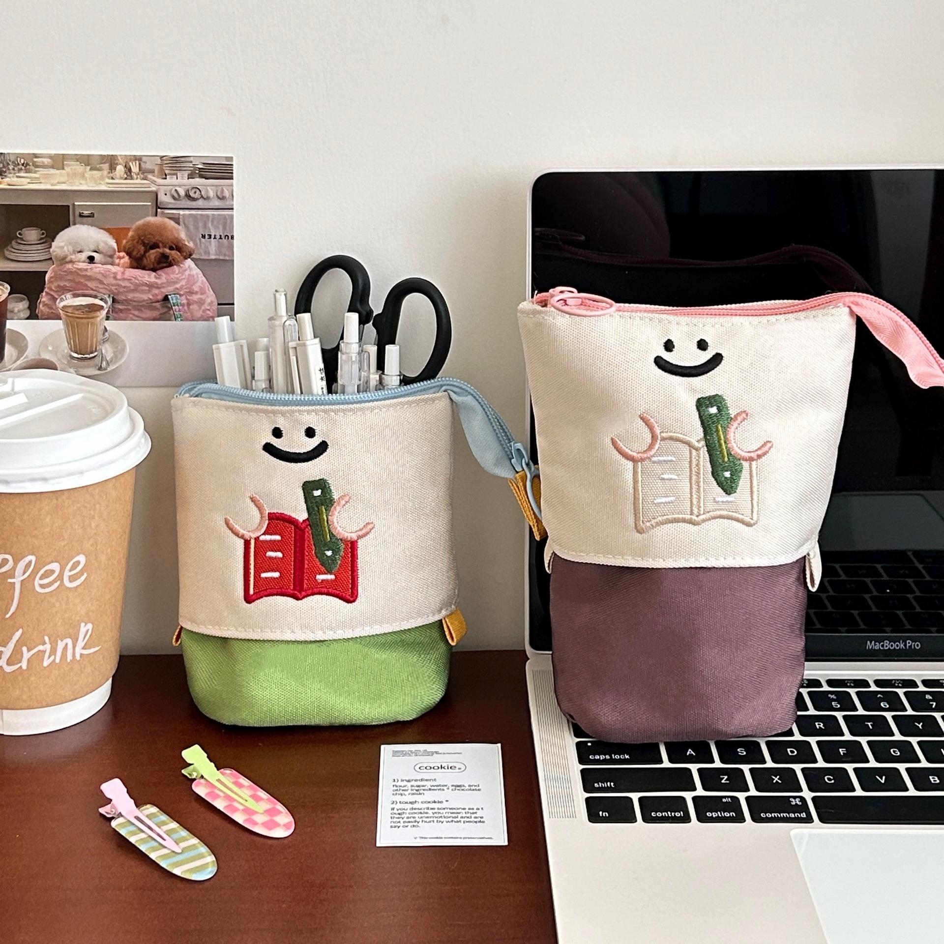 2024 Nueva Bolsa de Papelería de Dibujos Animados Ins Bolsa de Lápices de Almacenamiento de Gran Capacidad Bolsa de Cosméticos Apilable Soporte Telescópico para Lápices de Alto Valor