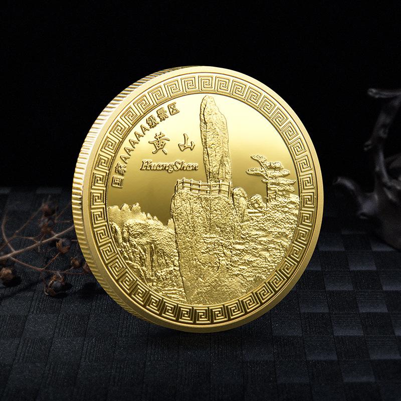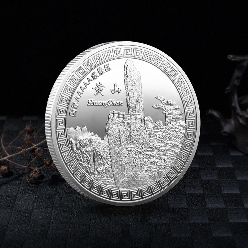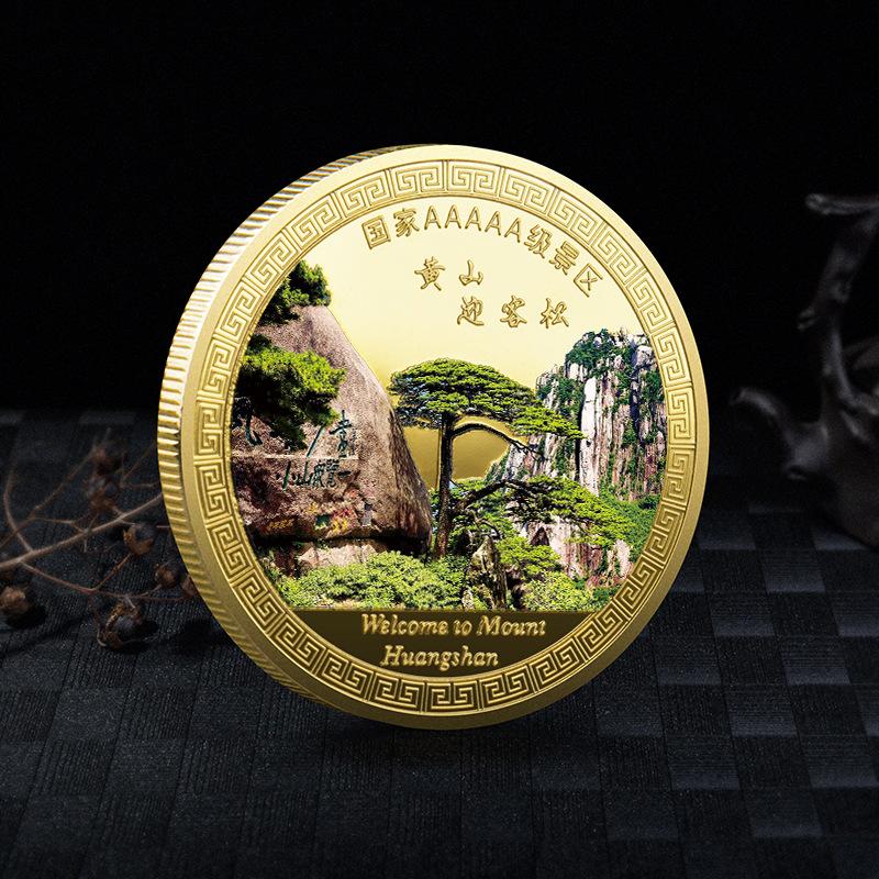 Moneda conmemorativa del Lugar Escénico Pino Yingke de Huangshan, Anhui, medalla conmemorativa en relieve tridimensional, producción de recuerdo del lugar escénico, Colección