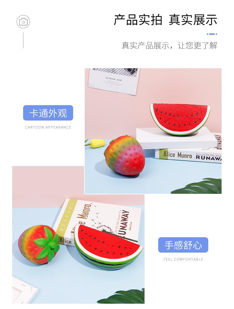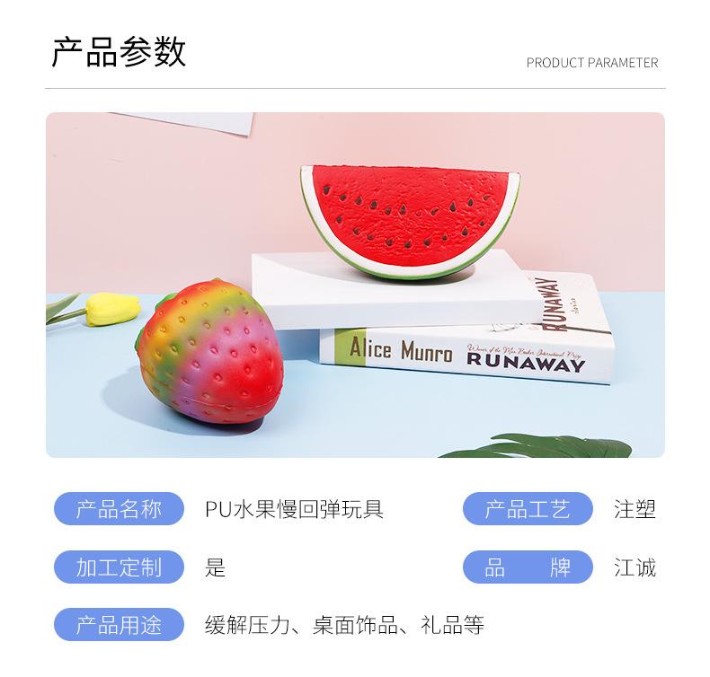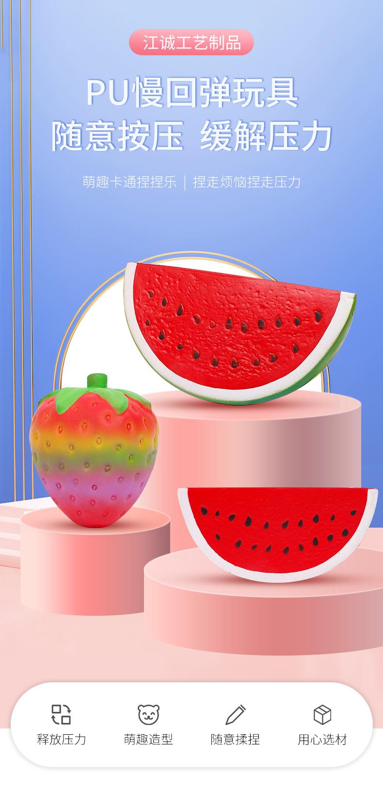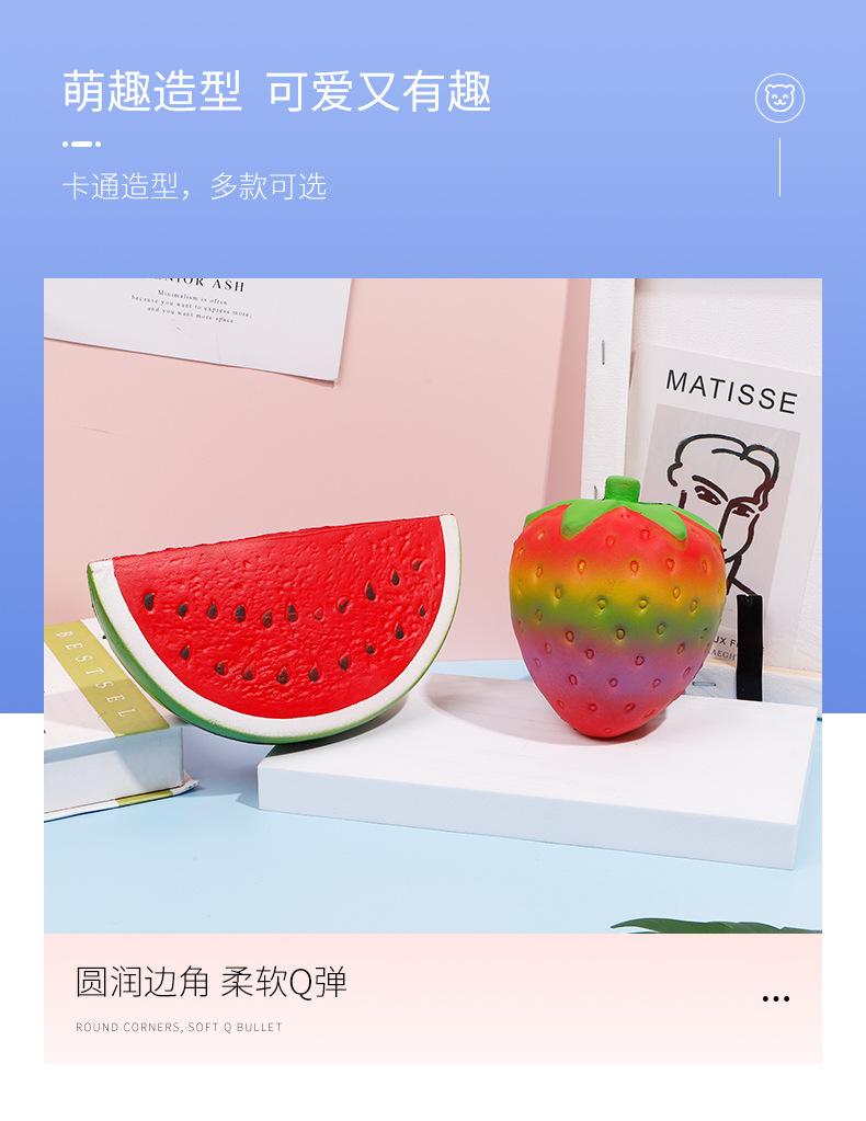 Los fabricantes suministran juguetes de descompresión de PU para niños, simulación de fruta, pellizco de mano, dibujos animados, sandía, muñeca, rebote lento, pellizco, música.