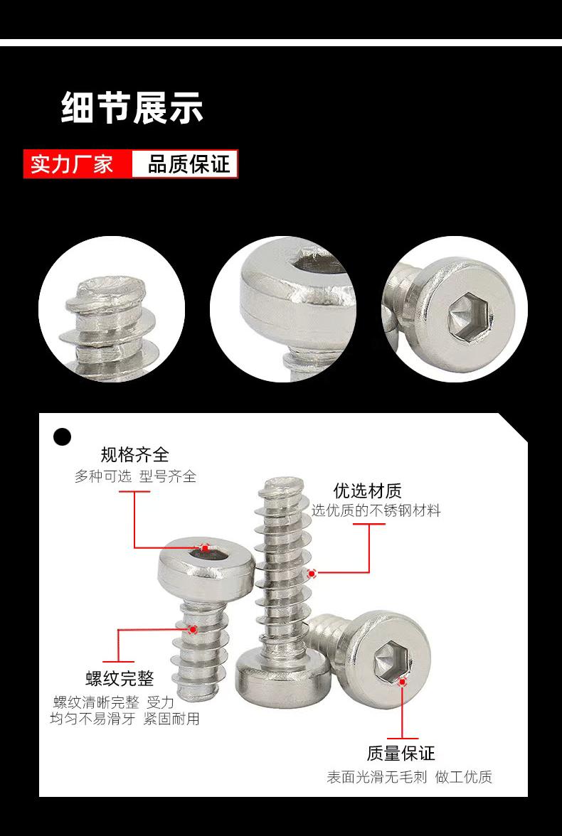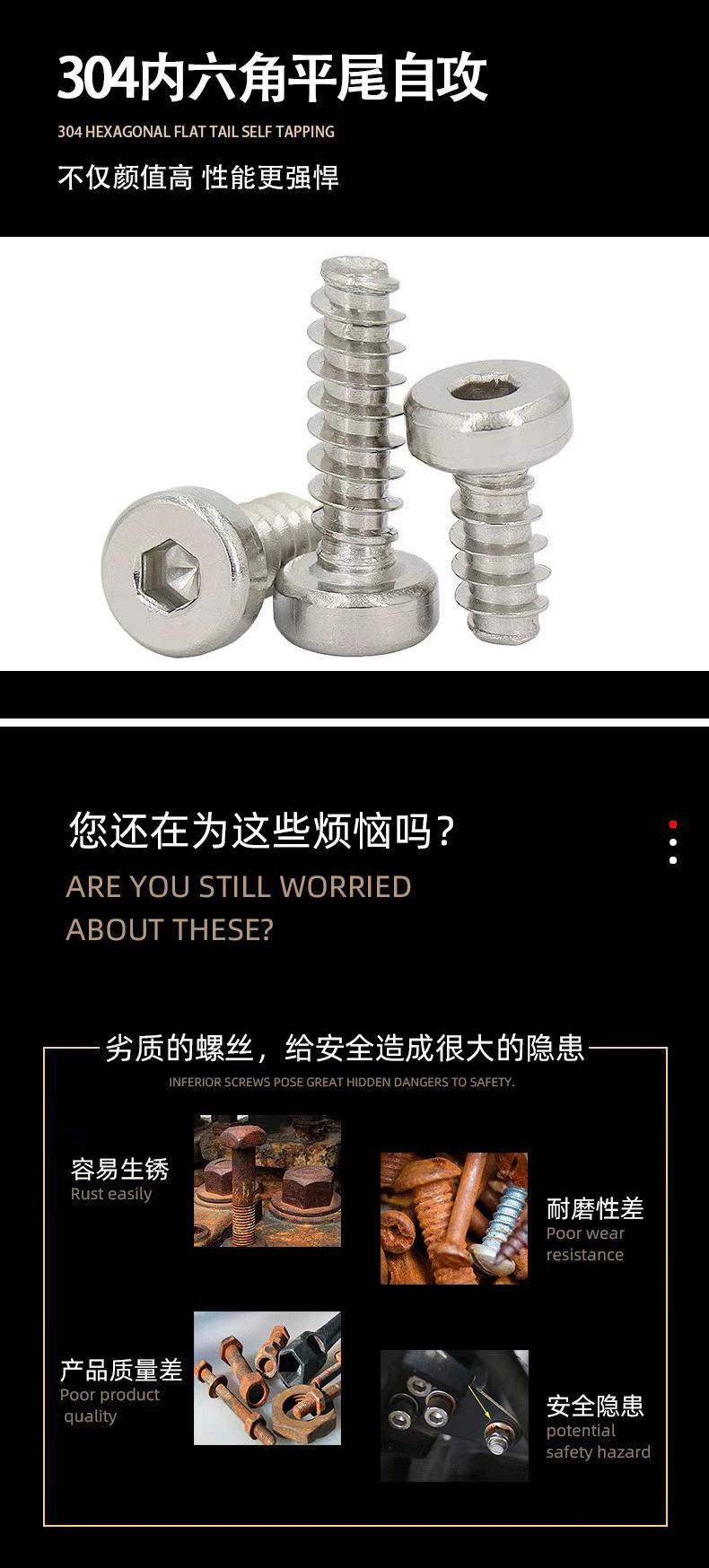 Acero inoxidable 304 cilíndrico cabeza delgada hexágono hueco cola plana tornillo autorroscante HB clavo autorroscante