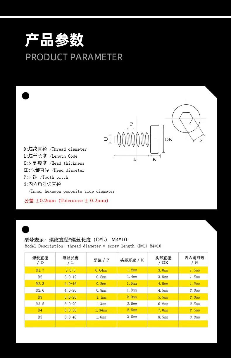 M1.7*3, M1.7*4, M1.7*5, M1.7*6, M1.7*8, M1.7*10, M2*3, M2*4, M2*5, M2*6, M2*8, M2*10, M2*12, M2.3*4, M2.3*5, M...