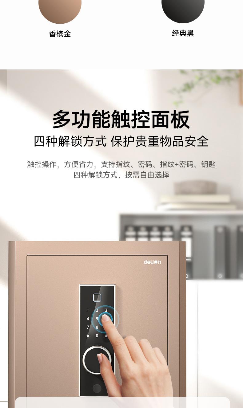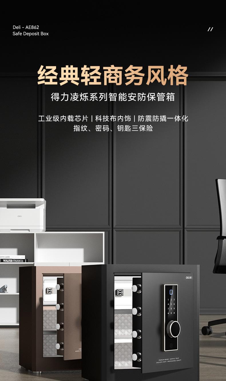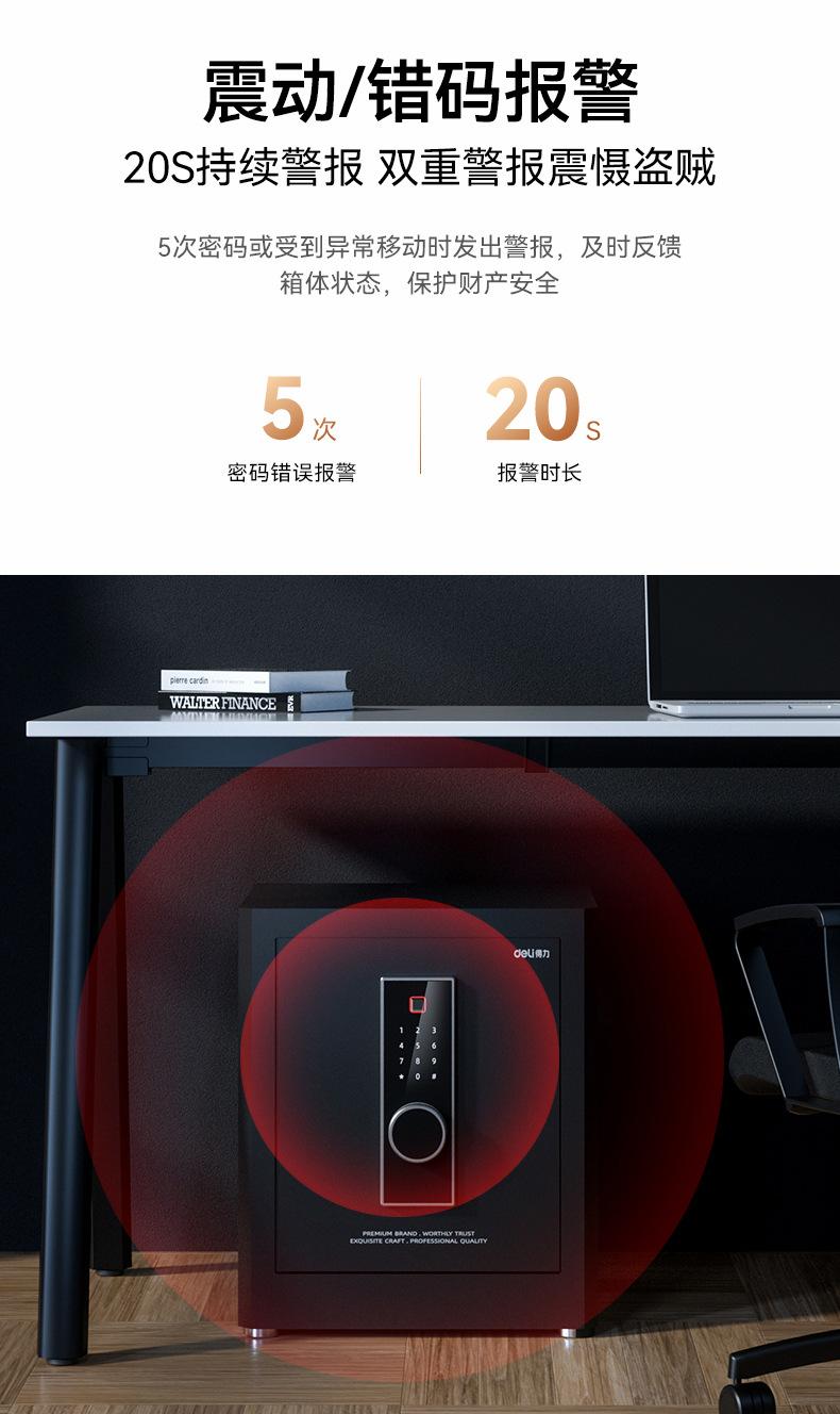 Caja de seguridad inteligente Deli AE862 con huella dactilar, contraseña, antirrobo, alarma de huella dactilar, acero inoxidable, 45 cm de alto