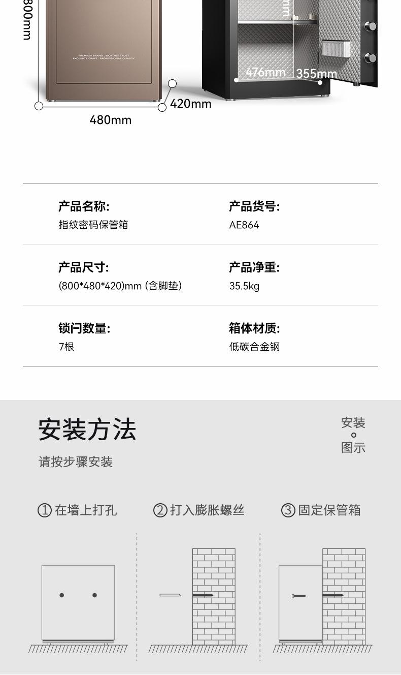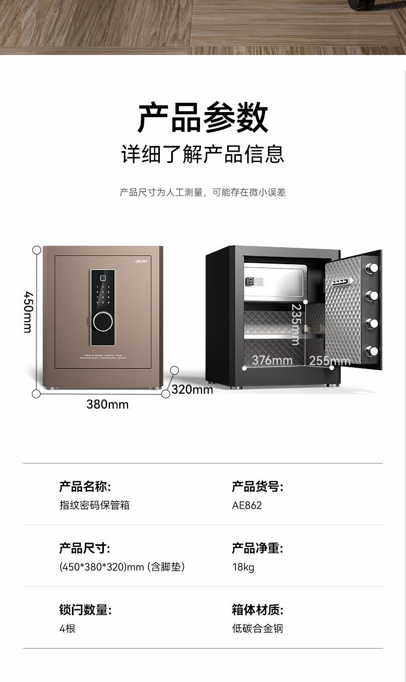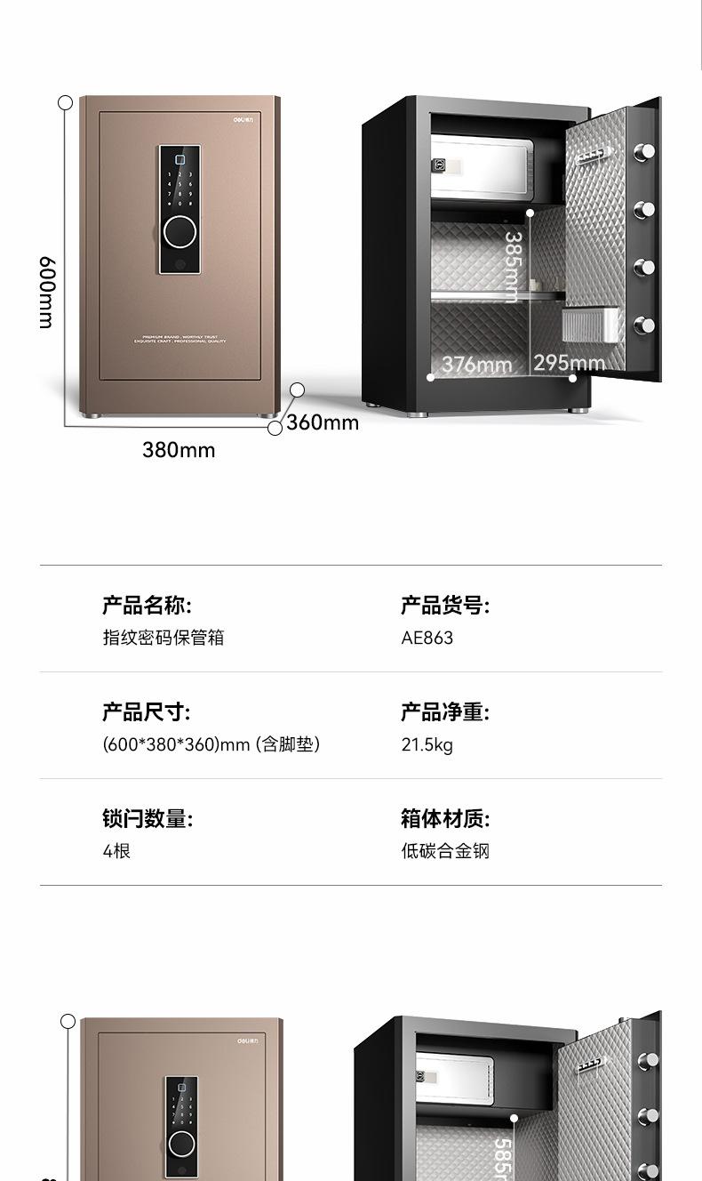 Caja de seguridad inteligente Deli AE862 con huella dactilar, contraseña, antirrobo, alarma de huella dactilar, acero inoxidable, 45 cm de alto