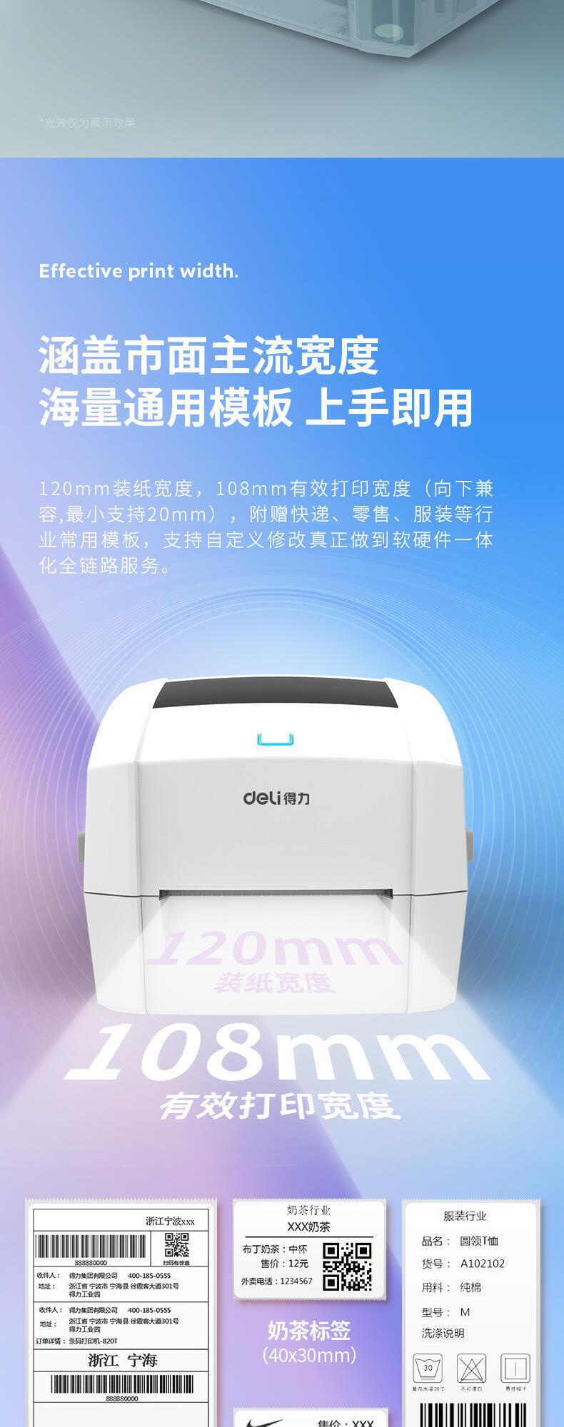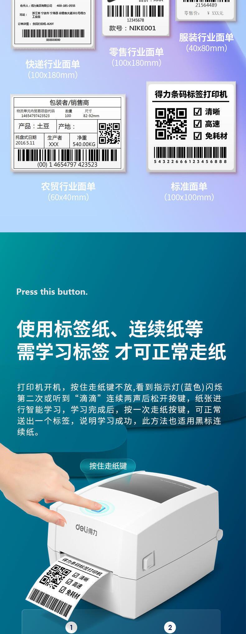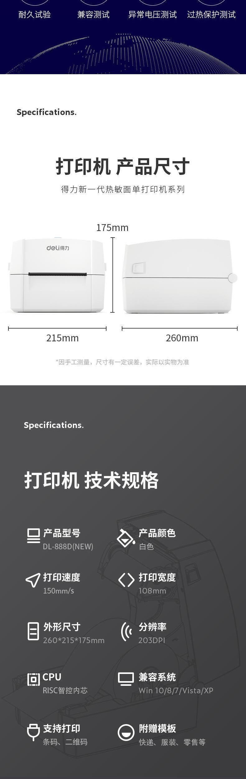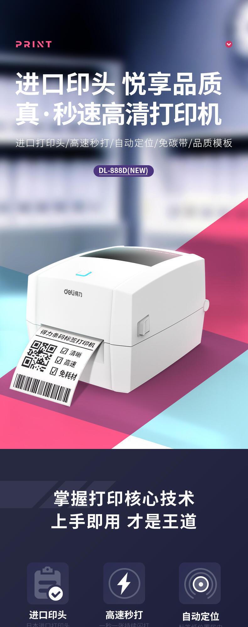 Impresora térmica de etiquetas Deli 888D, superficie electrónica, papel adhesivo individual, código de barras, código QR