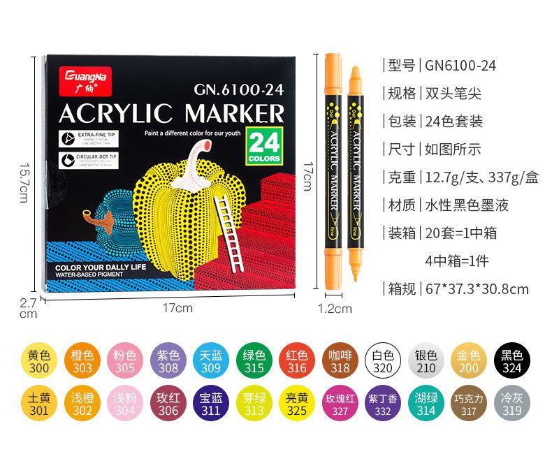 Marcador Acrílico de Doble Punta Guangna Gn6100 84 Colores Base Agua DIY Pintado a Mano Graffiti Colorear Marcador Impermeable