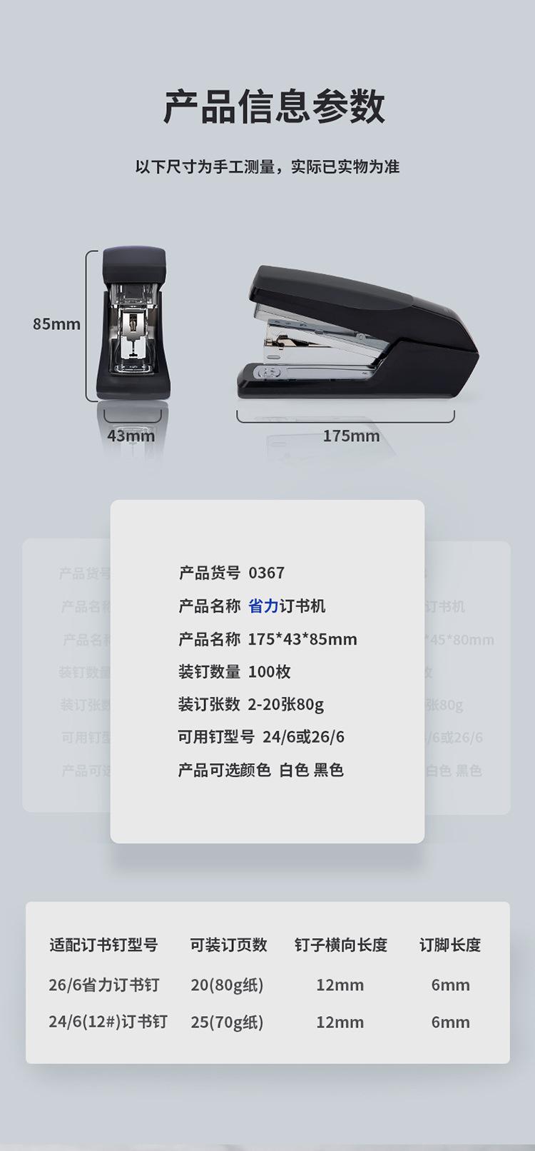 Grapadora ahorradora de mano de obra Deli 0367 Grapadora de oficina Manual para estudiantes Grapadora estándar engrosada Grapadora