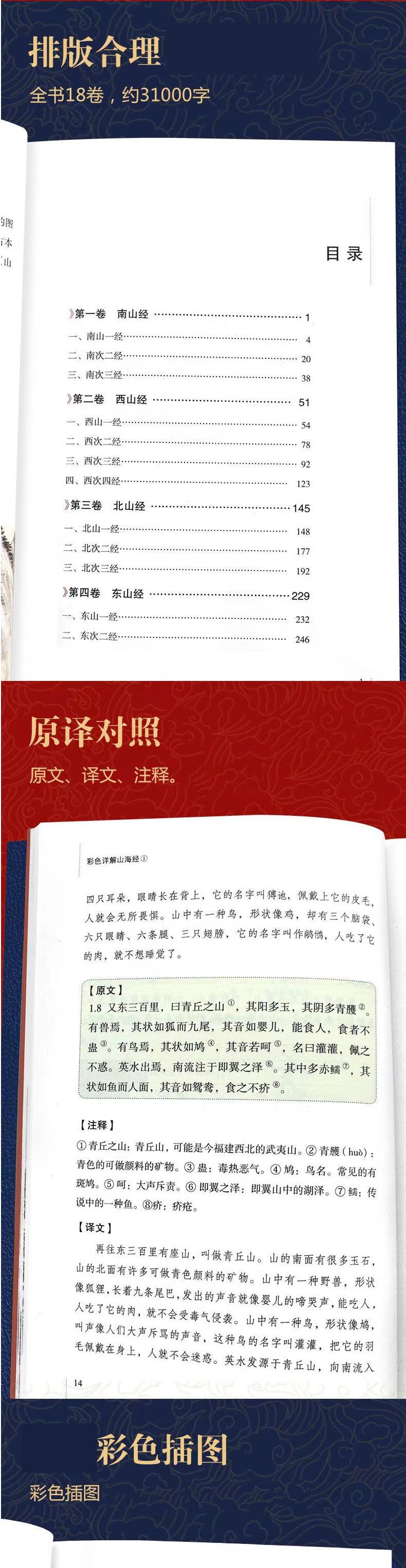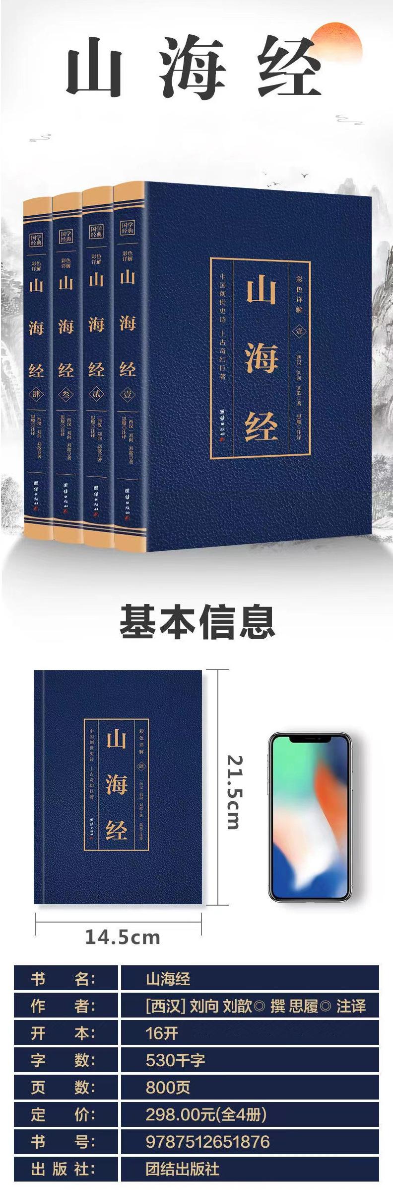 Explicación detallada y colorida del Sutra de Shanhai, 4 volúmenes, conjunto completo de historia histórica, historia china, libros extracurriculares para jóvenes, venta al por mayor