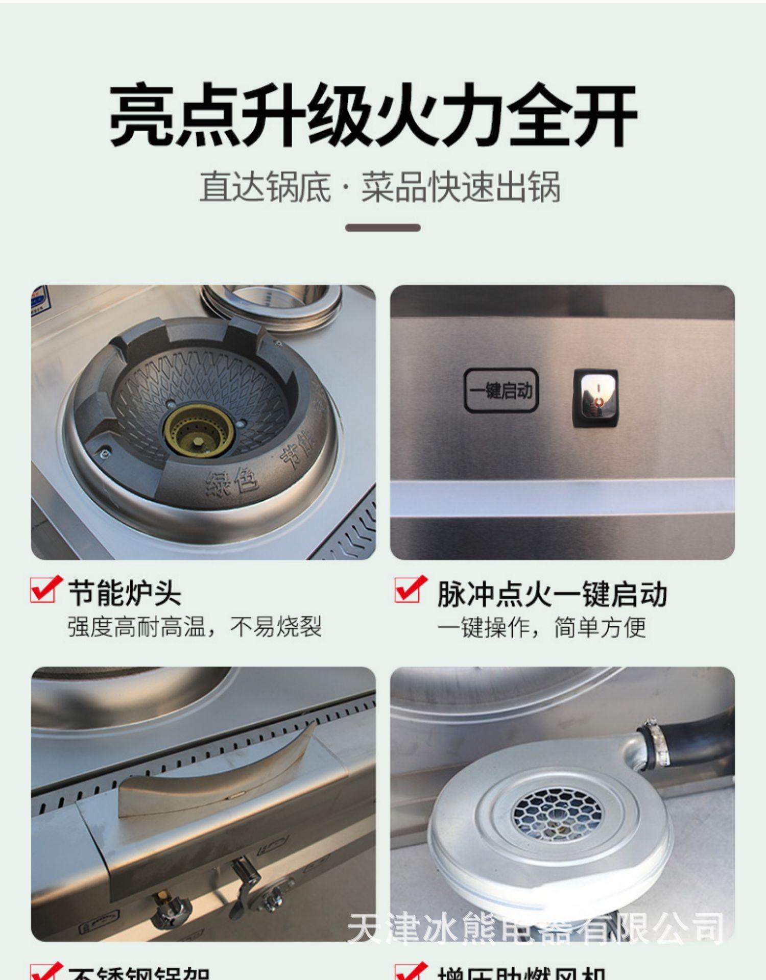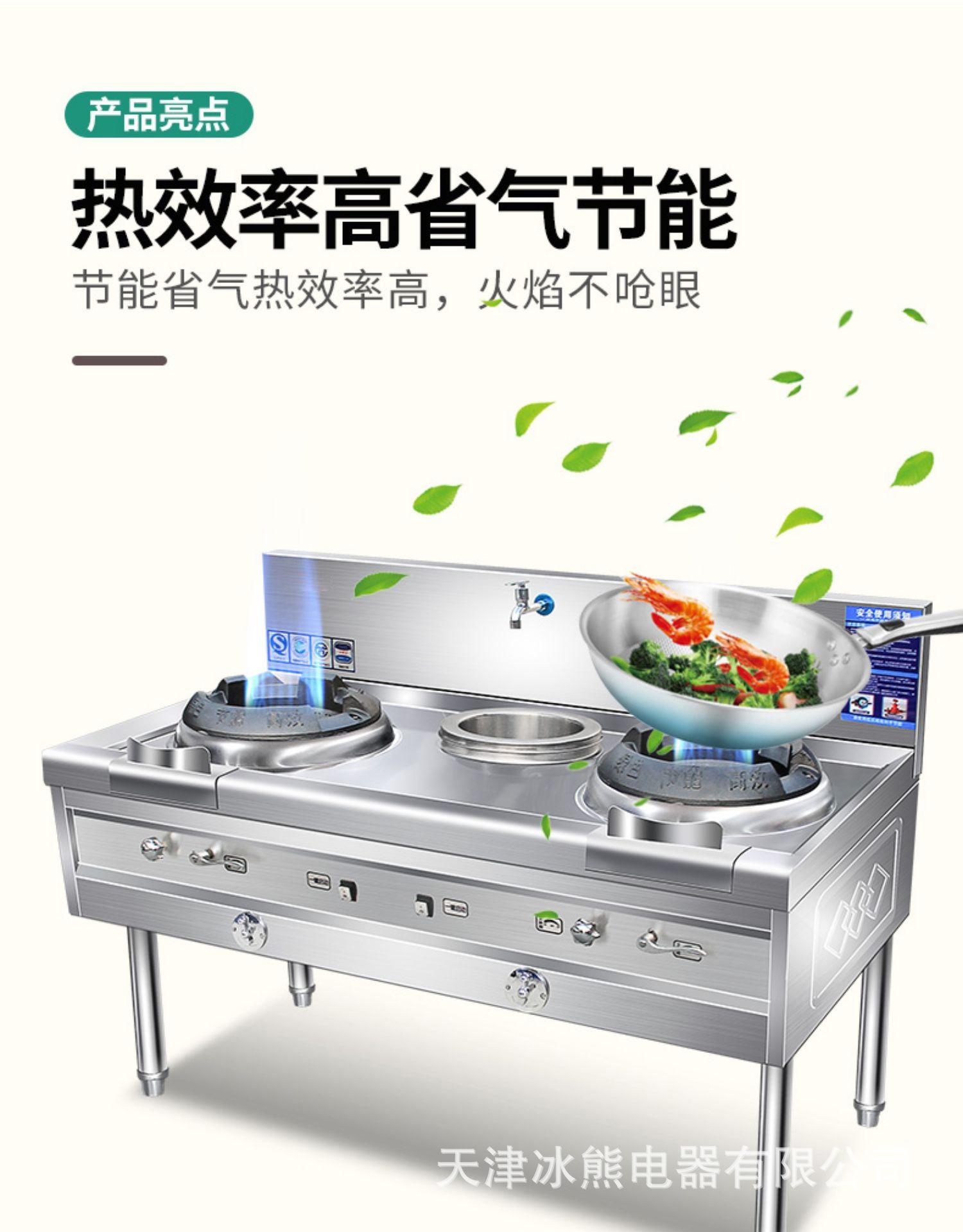 Estufa de gas comercial de una sola estufa, estufa de GLP, estufa de hotel de acero inoxidable, estufa de ahorro de energía, estufa doble.