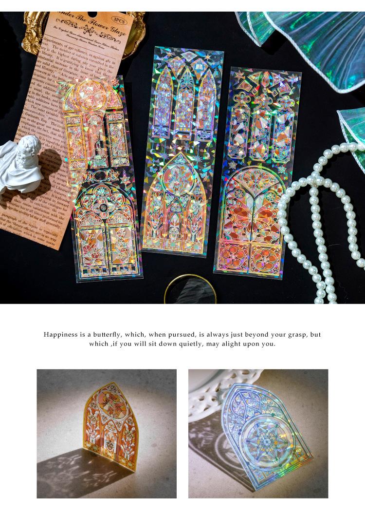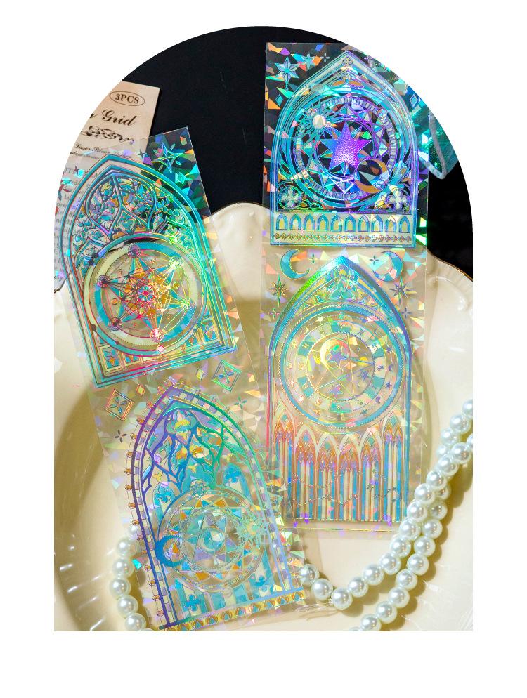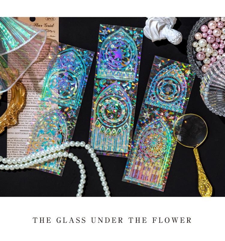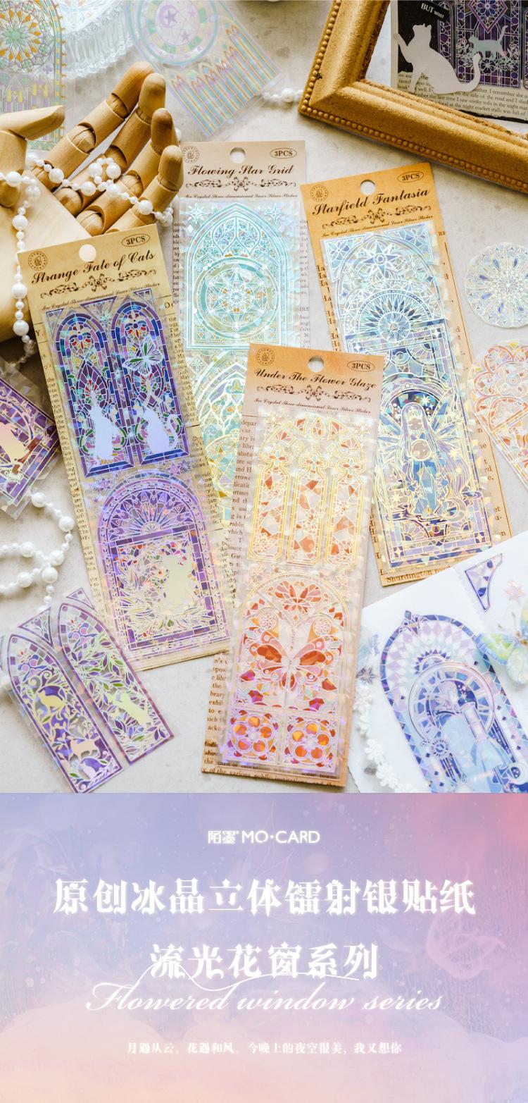 Pegatinas plateadas con láser tridimensional de cristal de hielo Momo, serpentinas, flores, ventana, diario, material de collage decorativo DIY, 4 modelos