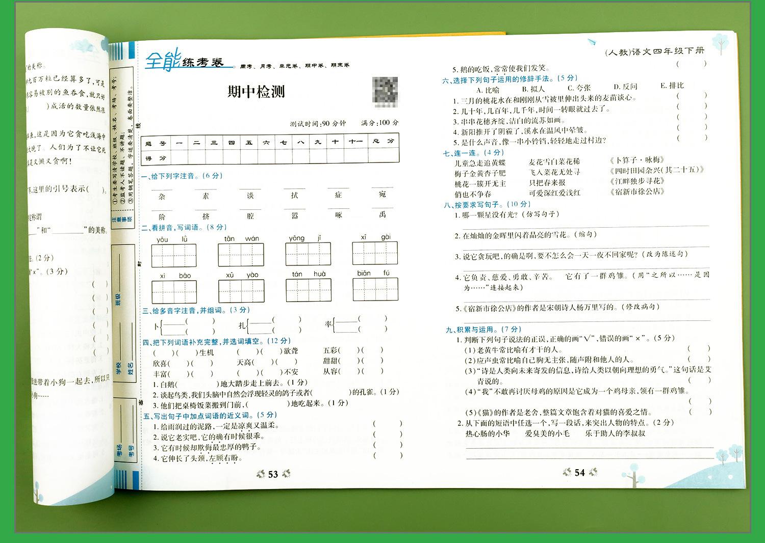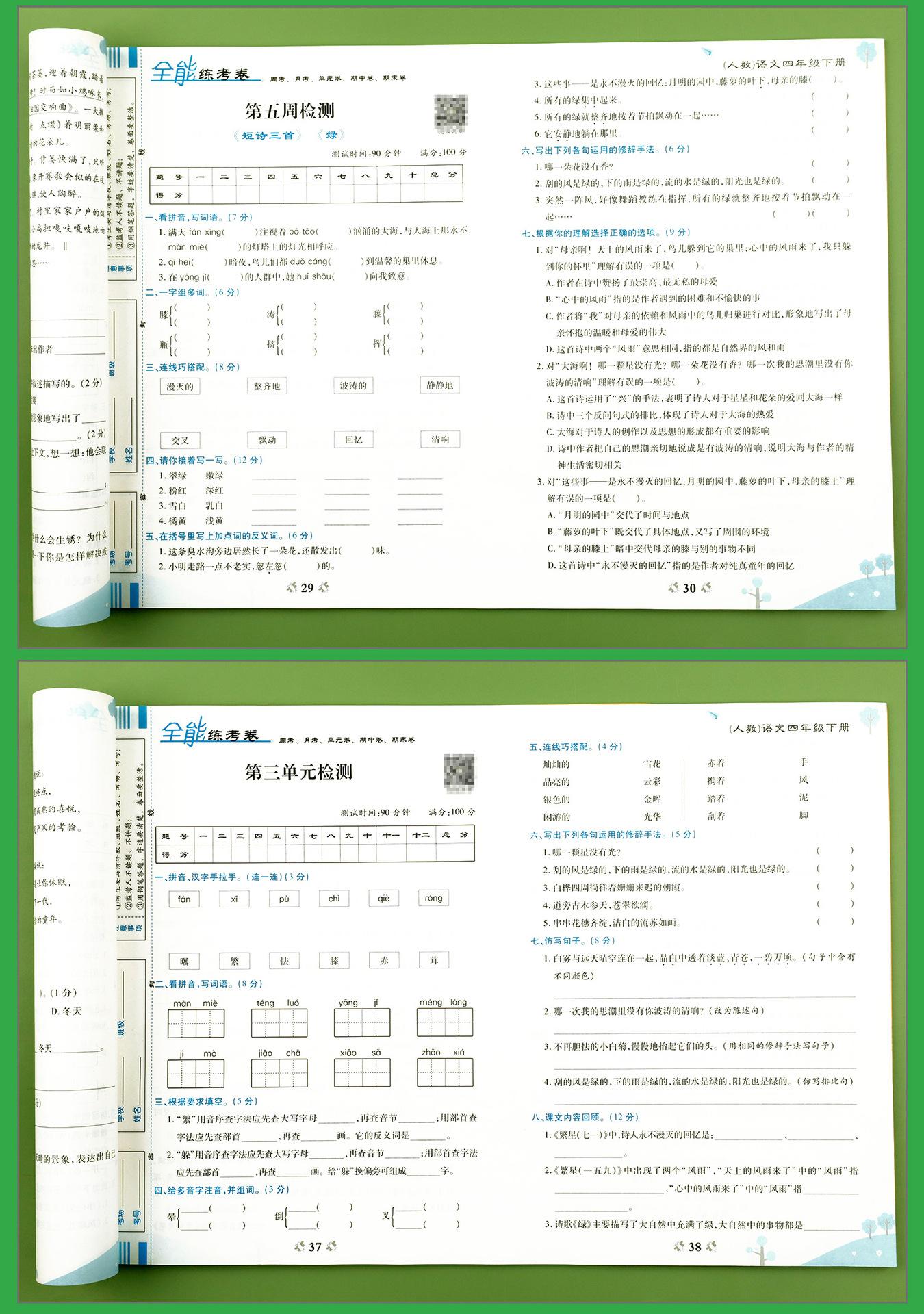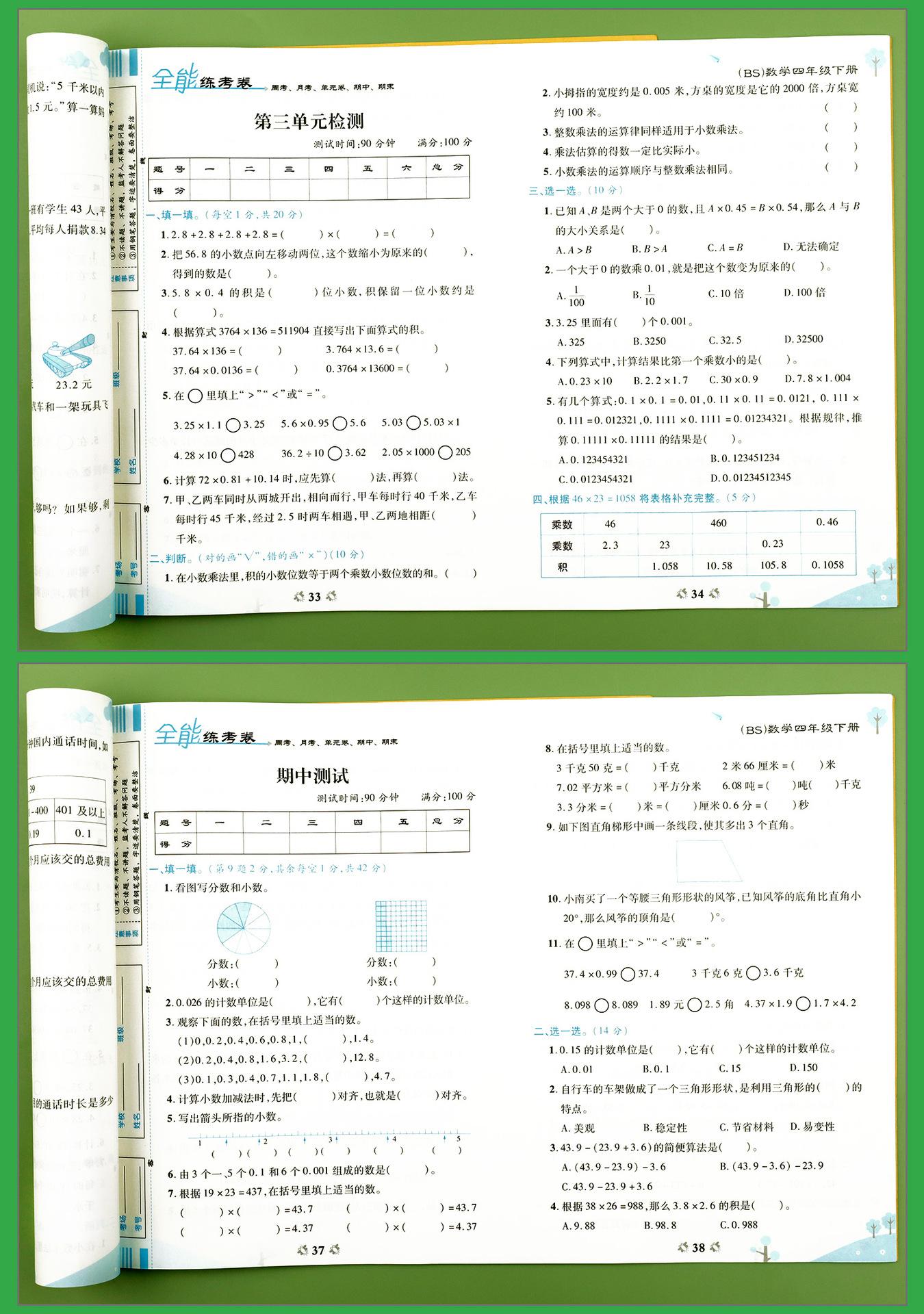 Matemáticas de cuarto grado, segundo volumen, edición de la Universidad Normal de Beijing, examen, examen, conjunto completo, escuela primaria, 4 ejercicios sincrónicos, preguntas de ejercicios
