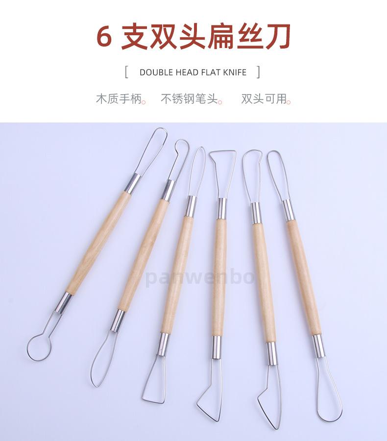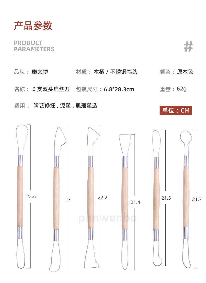 Raspador de doble cabeza para esculturas de arcilla Pan Wen Bo, cuchillo de alambre plano para tallar arcilla blanda, herramientas para esculturas de cerámica y arcilla