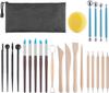 【Paquete Incluido】Recibirás un kit completo de herramientas para arcilla que incluye 5 herramientas de madera para esculpir/dar forma, 5 punzones de bola con mango de madera, 5 herramientas de silicona para esculpir arcilla, 4 punzones de bola con mango de goma, 4 punzones de plástico, 1 esponja de cerámica en una bolsa de almacenamiento negra.