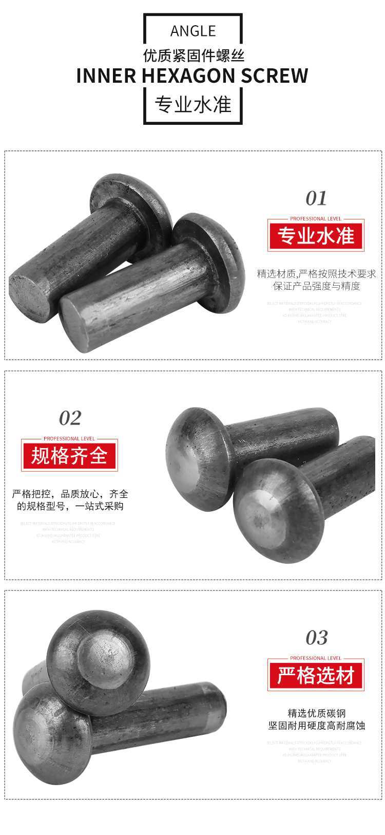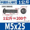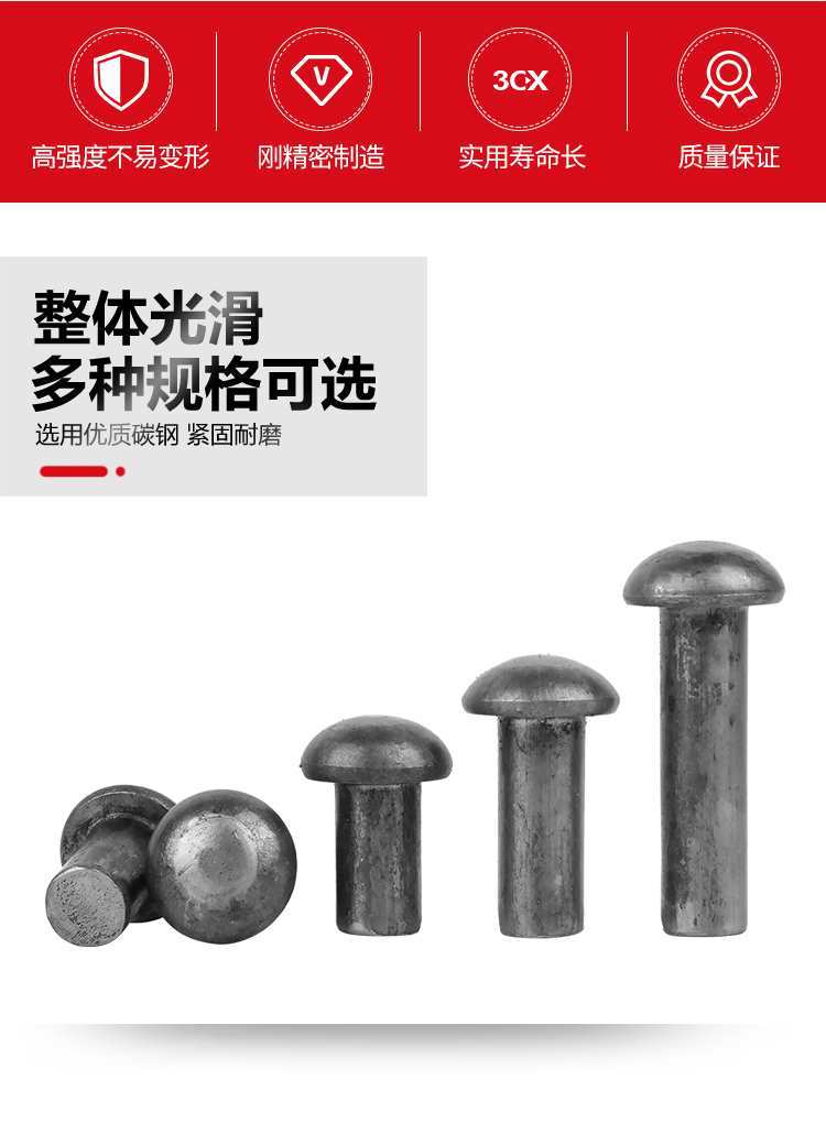 Remache de cabeza redonda de color natural de hierro, tapa redonda, clavo de percusión sólido, cabeza redonda, acero inoxidable 304 M2MM3M4M5M6M8