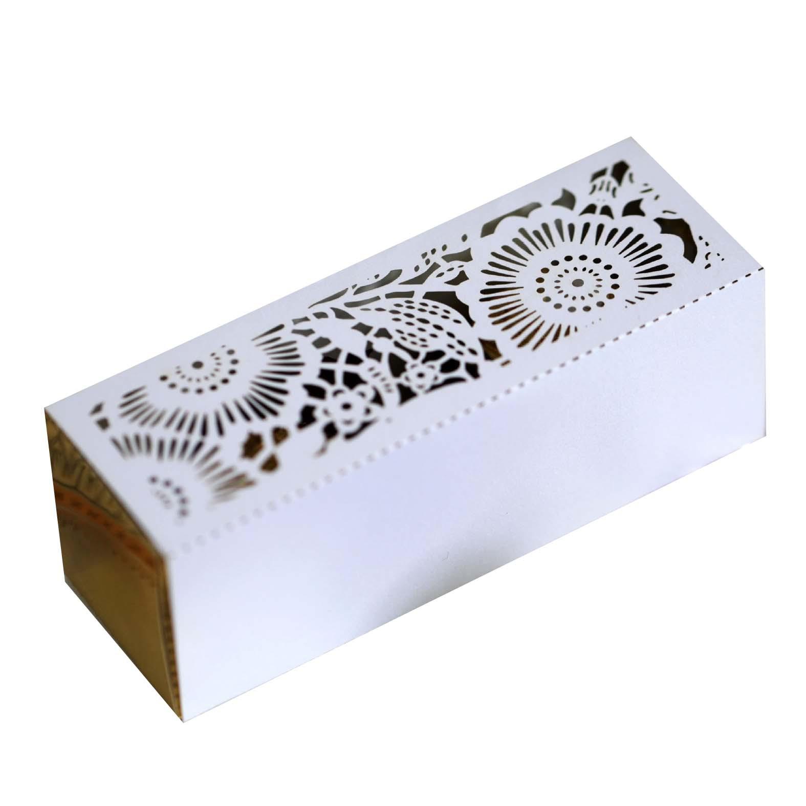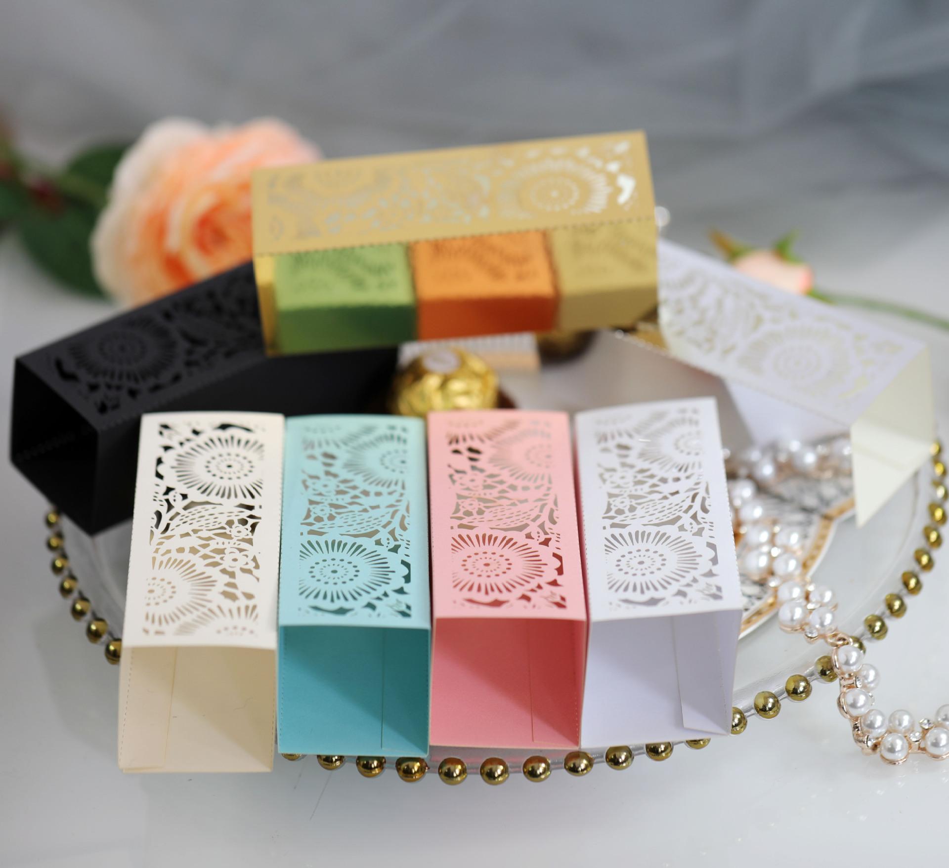 Podemos realizar la personalización de varias flores de papel huecas para regalos de bodas/bordes de pasteles/cajas de dulces de boda huecas con láser/todo tipo de juegos de cajas de papel huecas con láser para embalaje/tarjetas de felicitación huecas/invitaciones huecas/tarjetas de asiento y otros diversos accesorios artesanales relacionados con el láser.