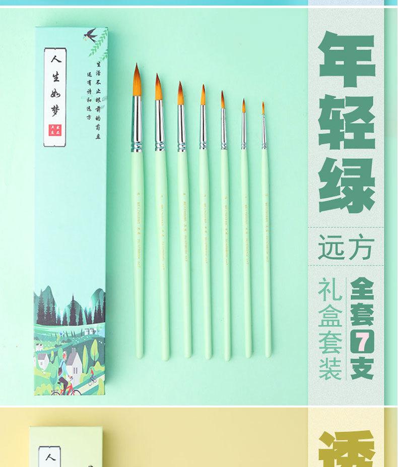Nylon wool watercolor pen 7 gift box set young green-far away