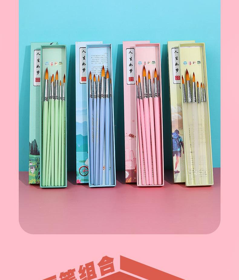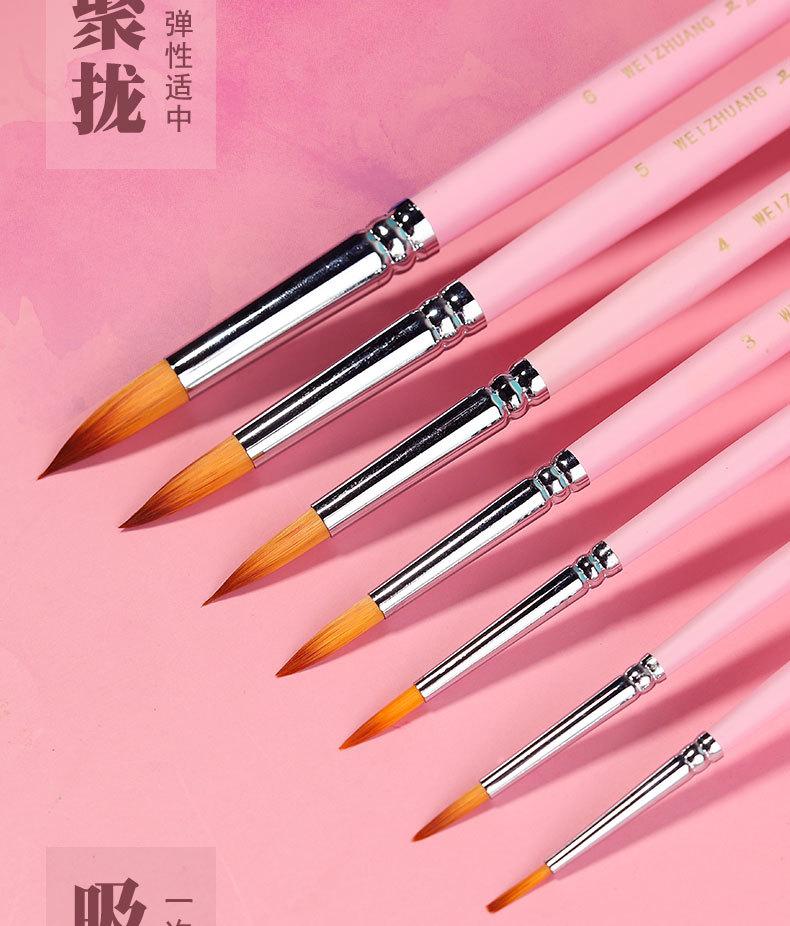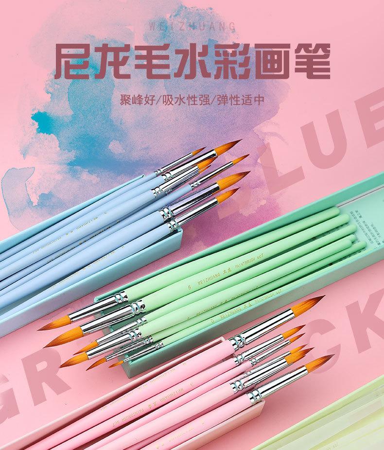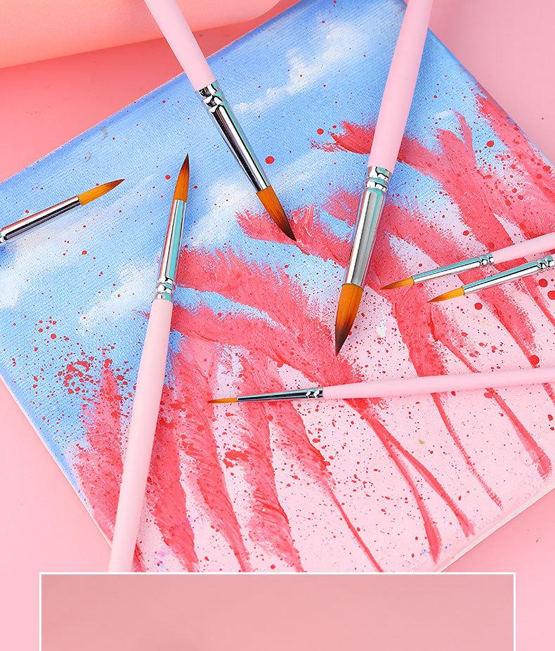 Set de 7 Pinceles de Nailon Transfronterizo para Acuarela Estudiante de Arte DIY Punta Redonda Pincel para Gouache Acuarela Pintura Acrílica