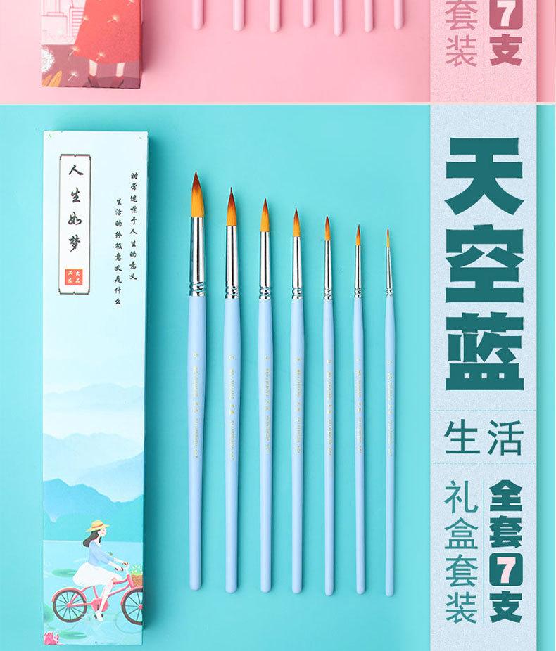 Nylon wool watercolor pen 7 gift box set sky blue-Life
