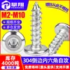 Tornillo autorroscante de cabeza plana con hexágono invertido de acero inoxidable 304, cabeza redonda plana, clavo autorroscante con bisel, M5M6M8