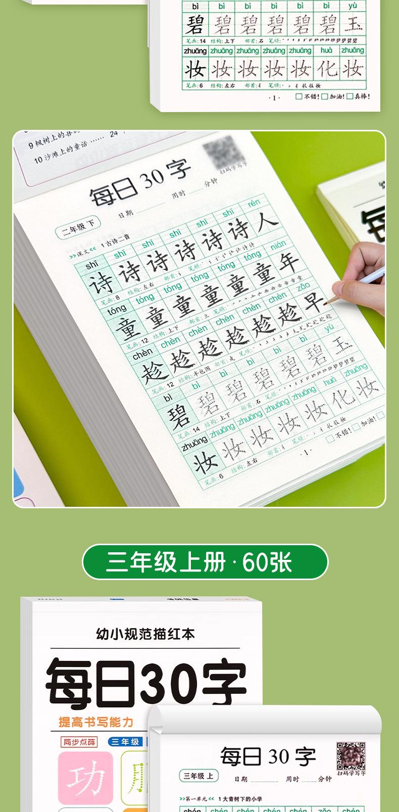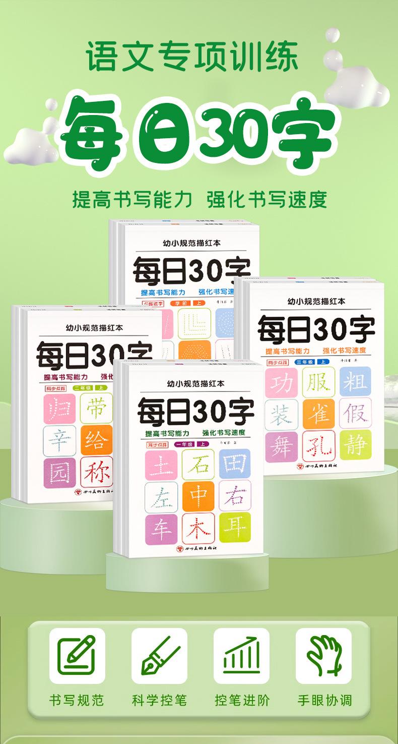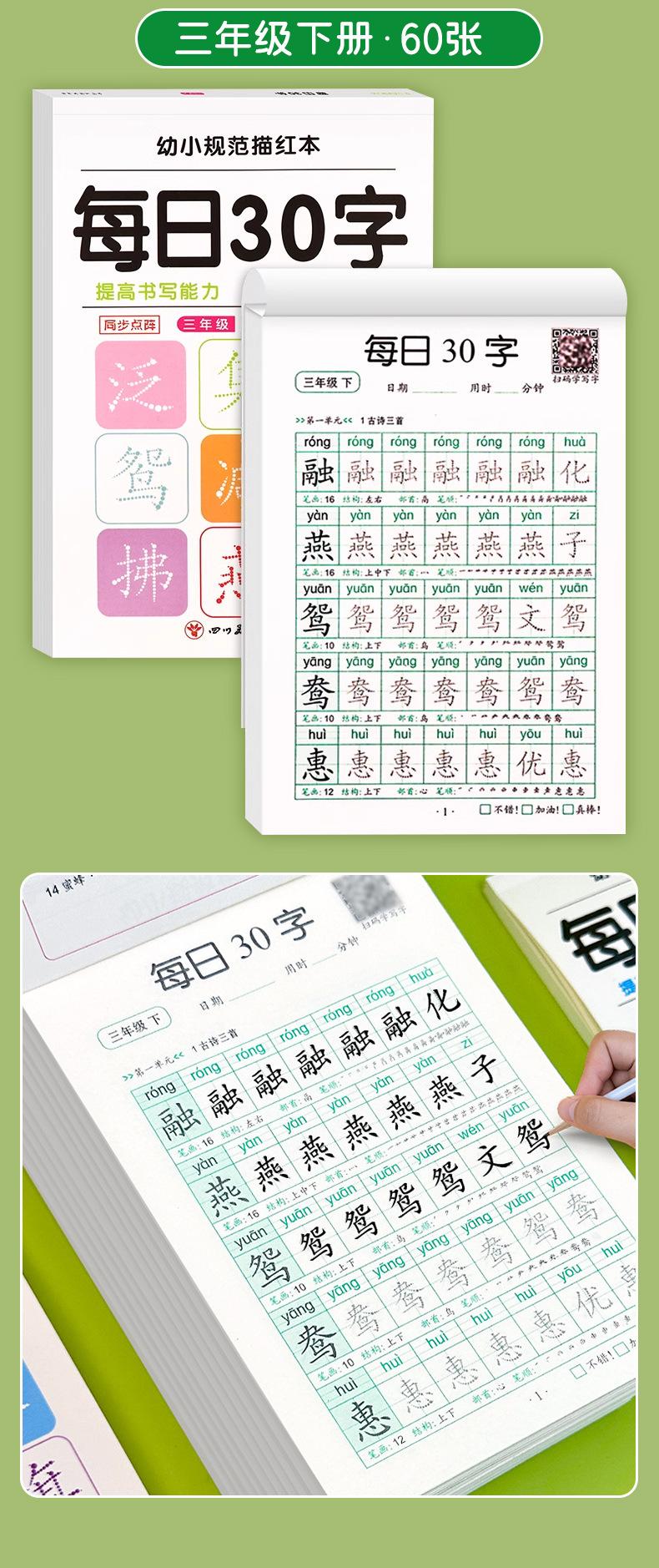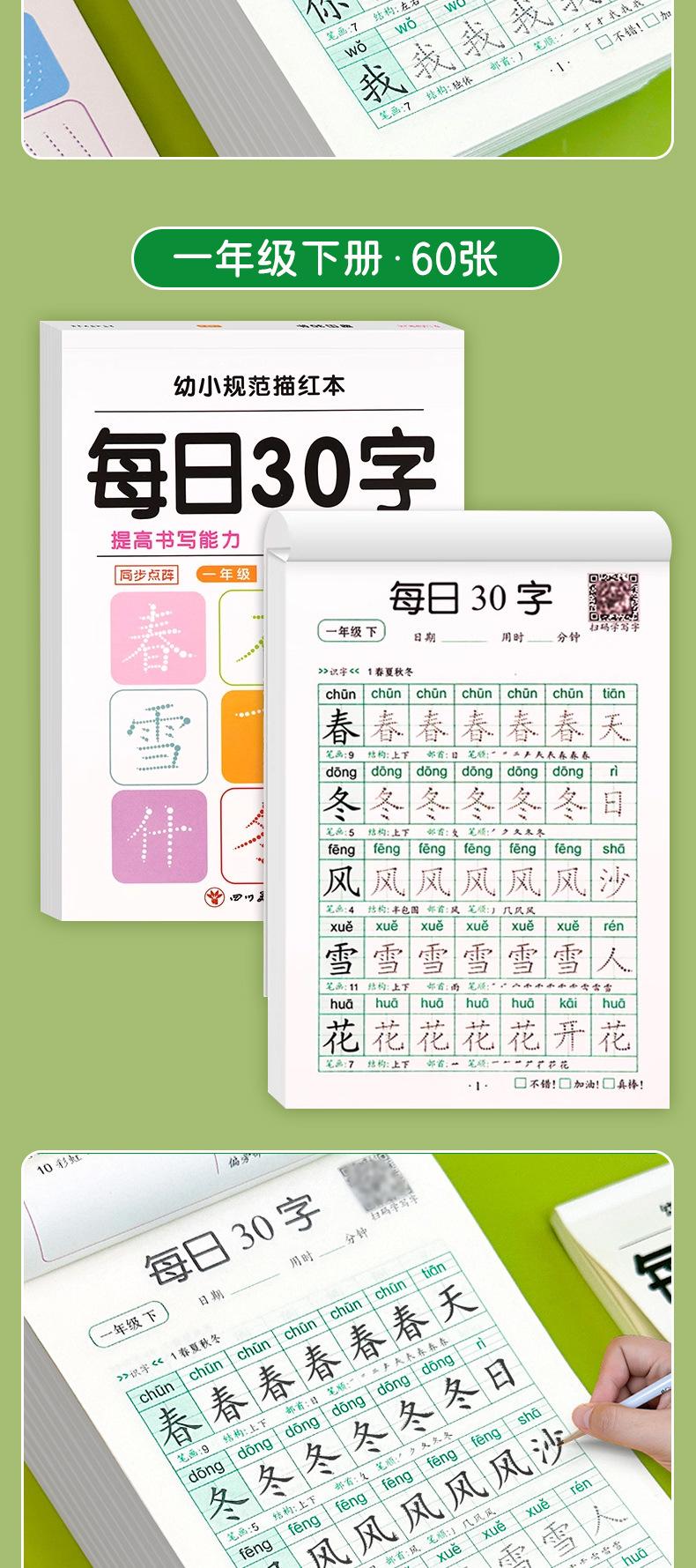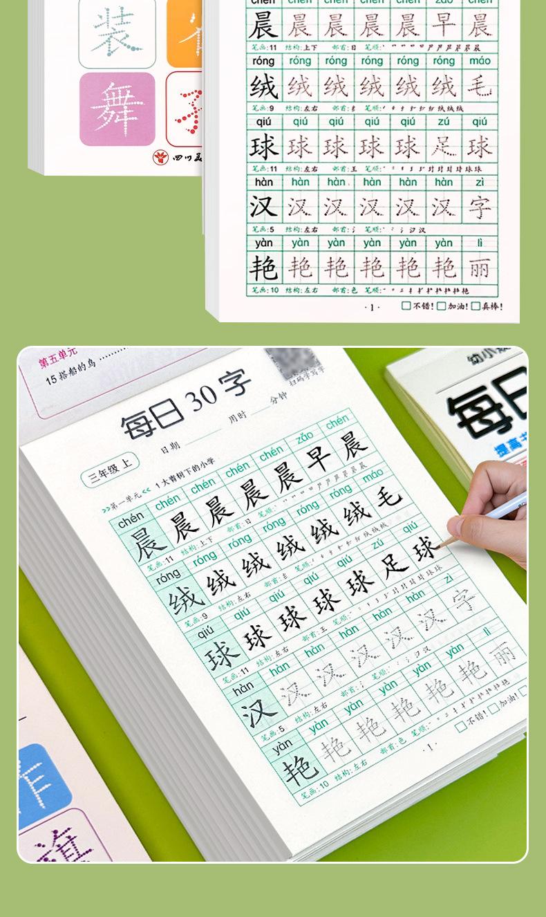 Estudiantes de primaria Grado Uno Dos Tres cuaderno de copia sincrónico de descompresión 30 palabras Edición Educación Popular Diaria cuaderno de práctica de palabras nuevas sincrónicas chinas