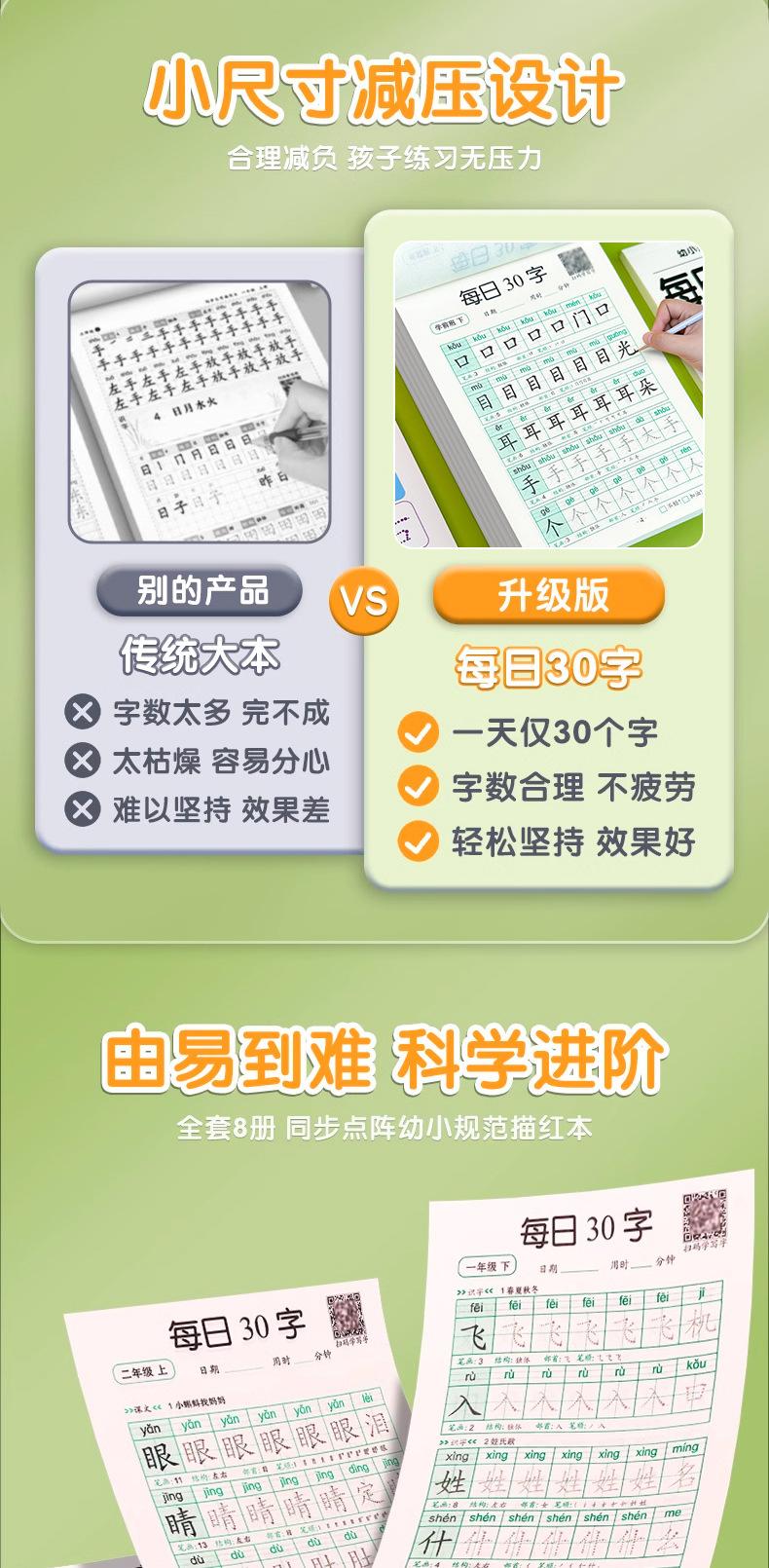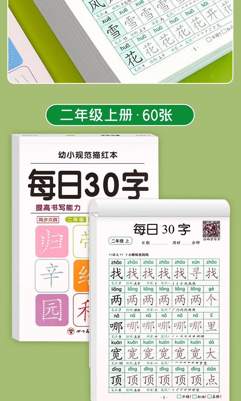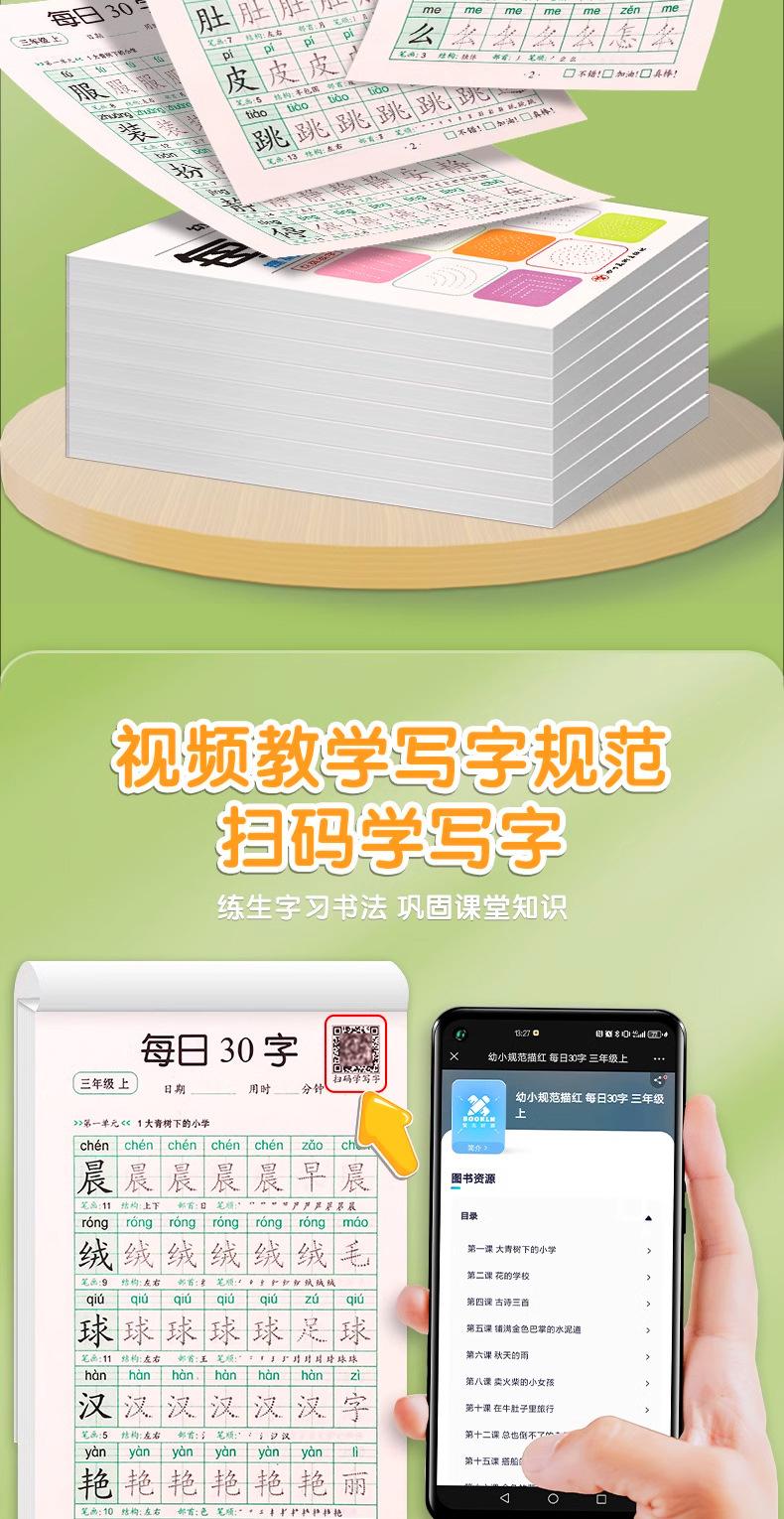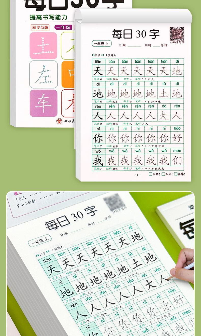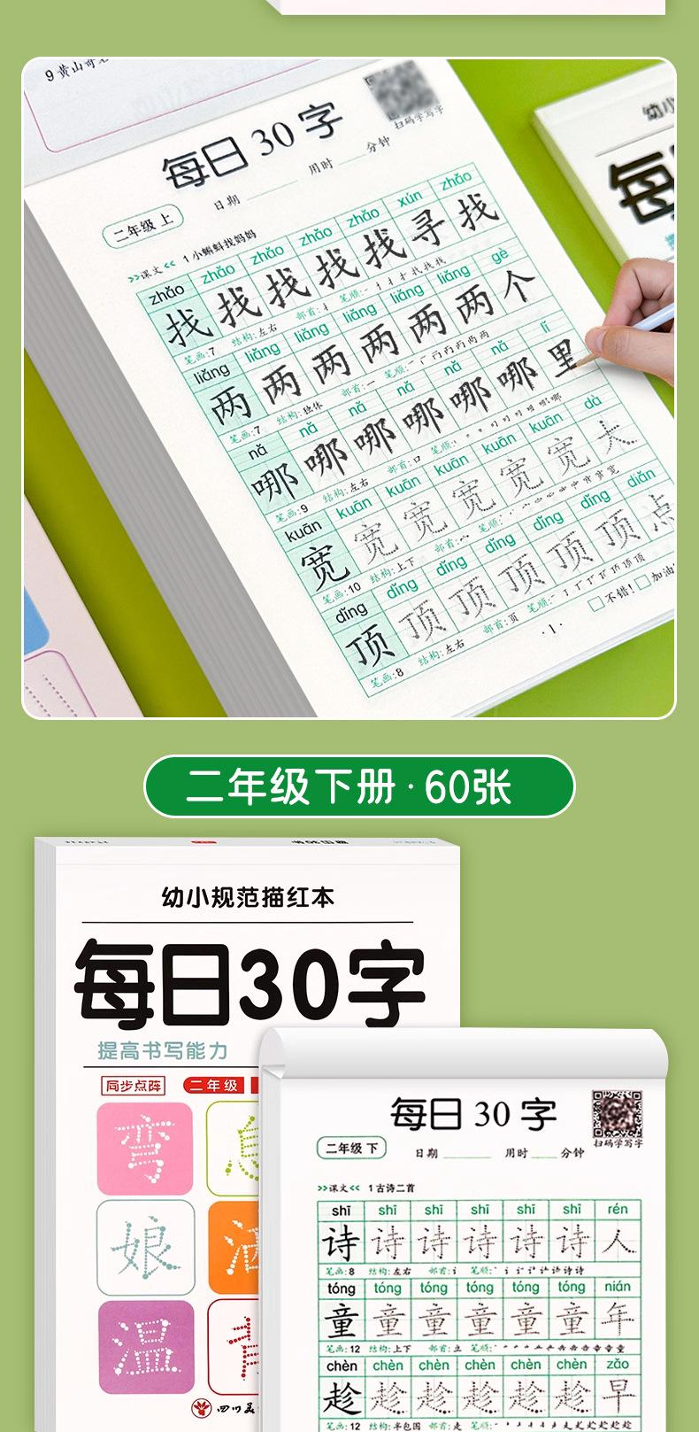 Estudiantes de primaria Grado Uno Dos Tres cuaderno de copia sincrónico de descompresión 30 palabras Edición Educación Popular Diaria cuaderno de práctica de palabras nuevas sincrónicas chinas