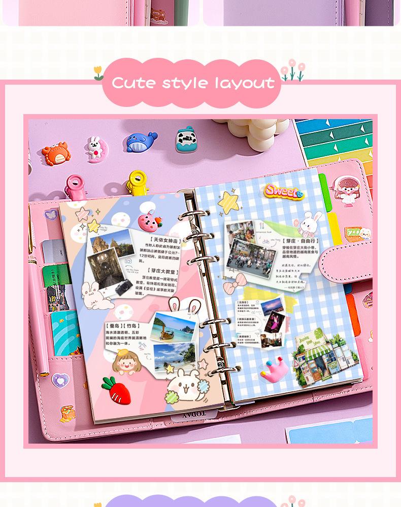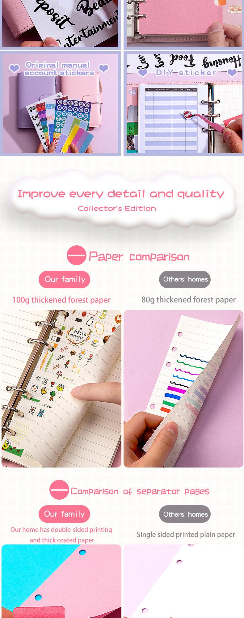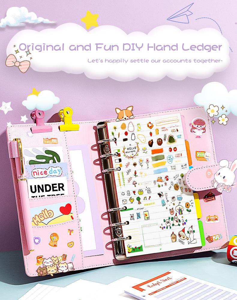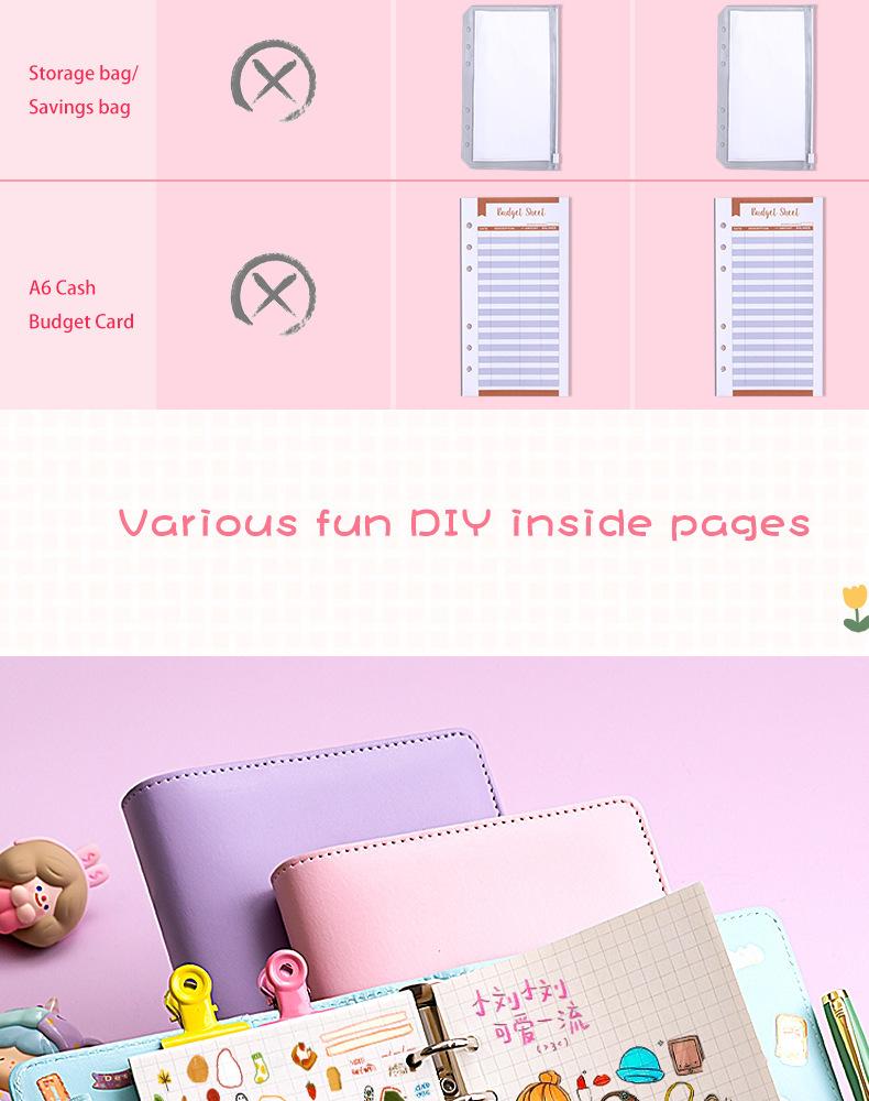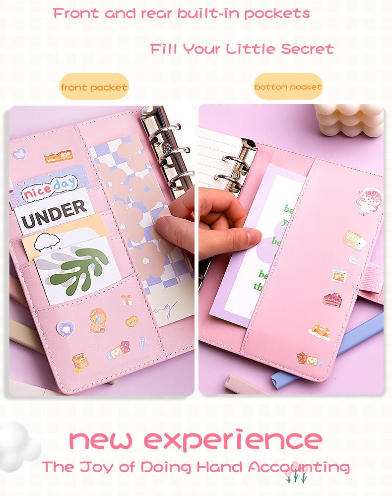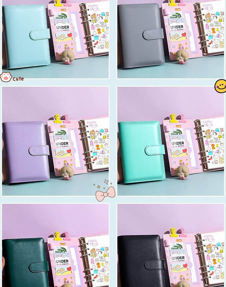 Cuaderno Macaron A6 con diseño transfronterizo, con tapa de cuero, hojas sueltas, cuaderno de planificación de presupuesto de efectivo