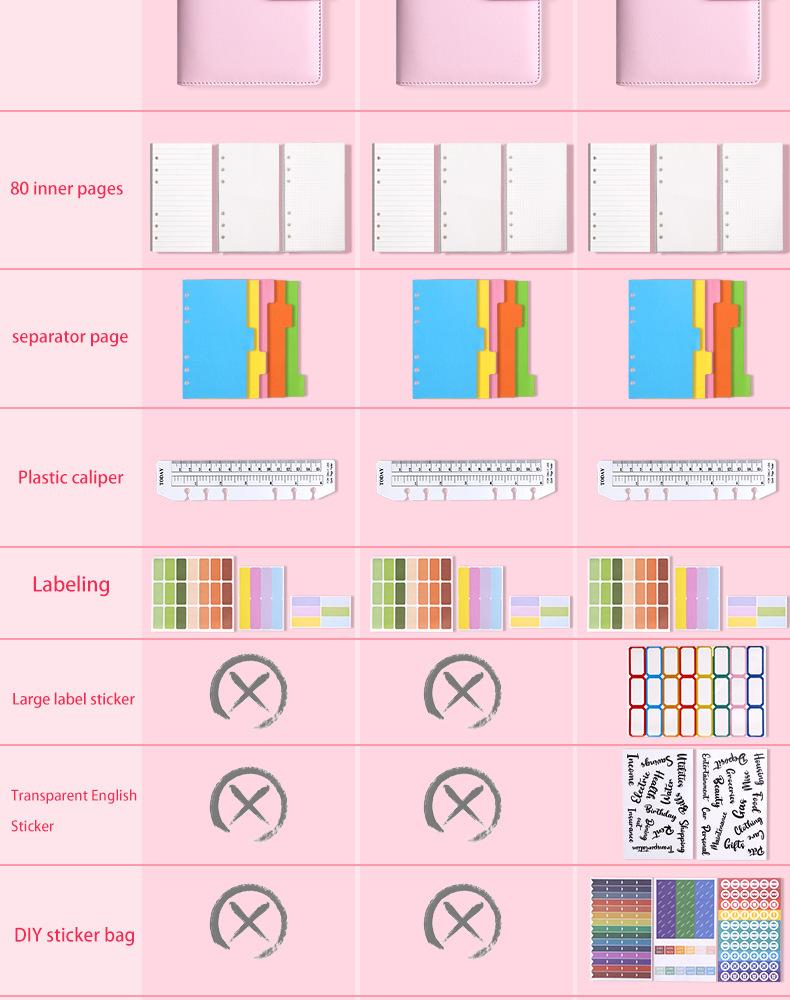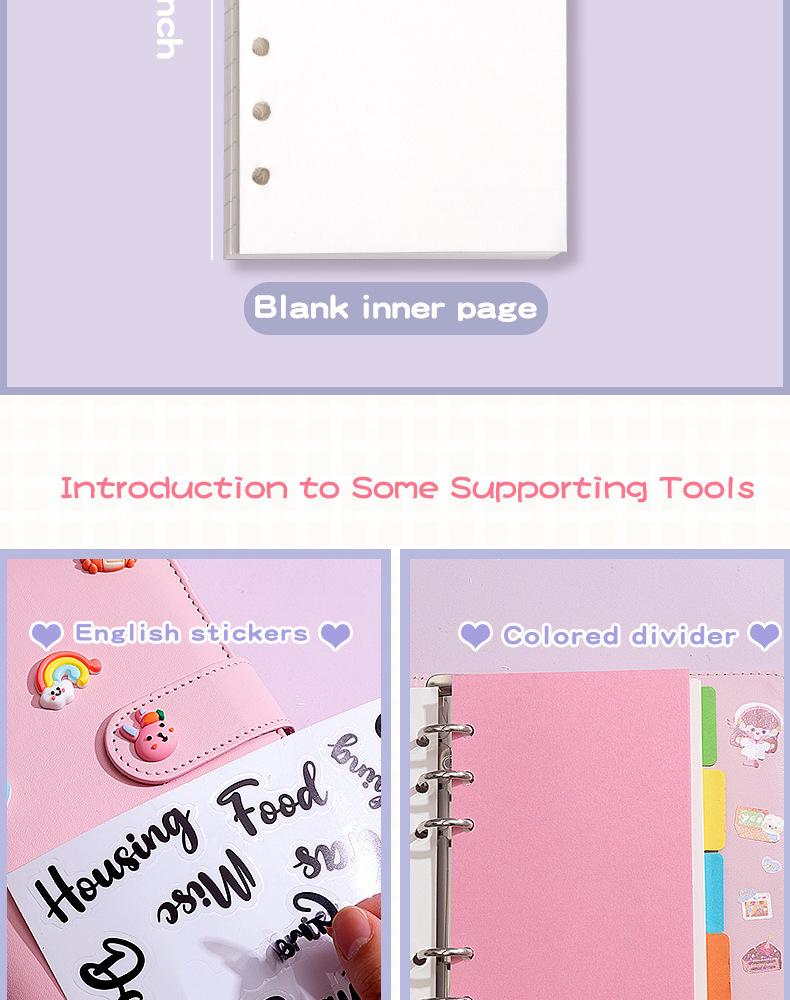 Black (shell) 12 budget cards 8 zipper bags Post-it notes 2 English stickers transparent calipers