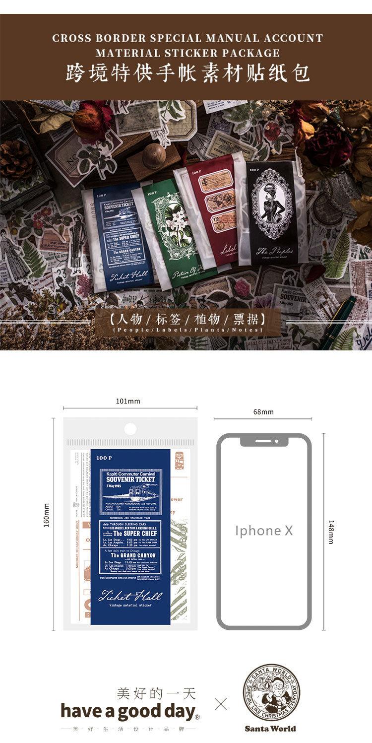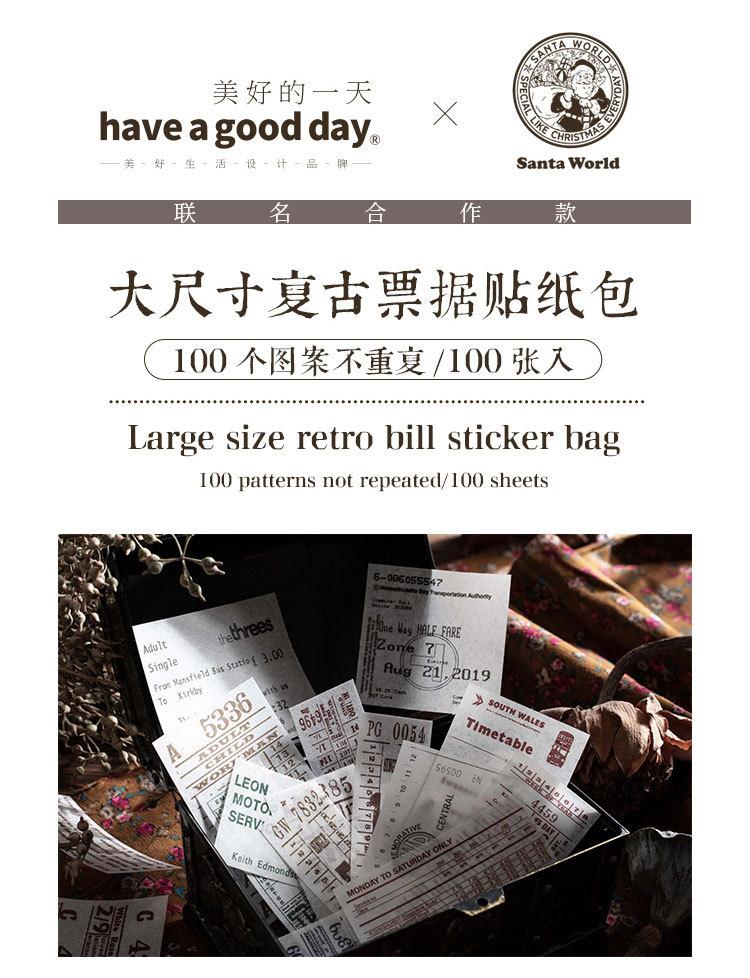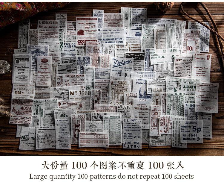 Paquete de pegatinas "Un hermoso día", serie de billetes de periódico, manual de facturas retro, material de collage, 100 en 1