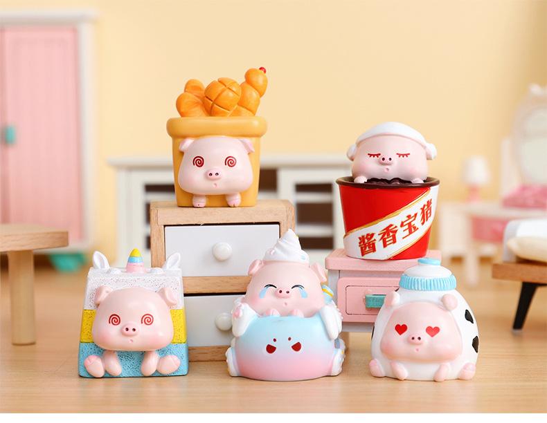 Caja sorpresa para decoración de escritorio, venta al por mayor, muñeco de cerdo de dibujos animados, regalo creativo pequeño, juguetes para niños hechos a mano