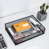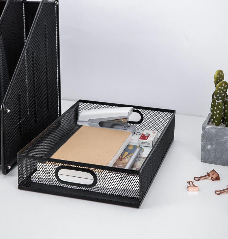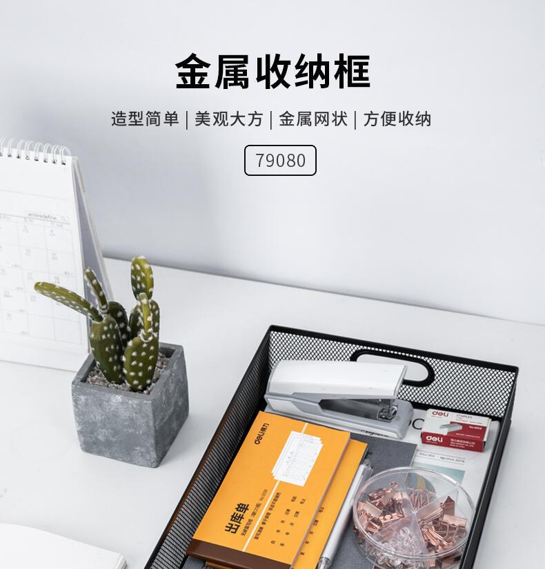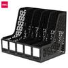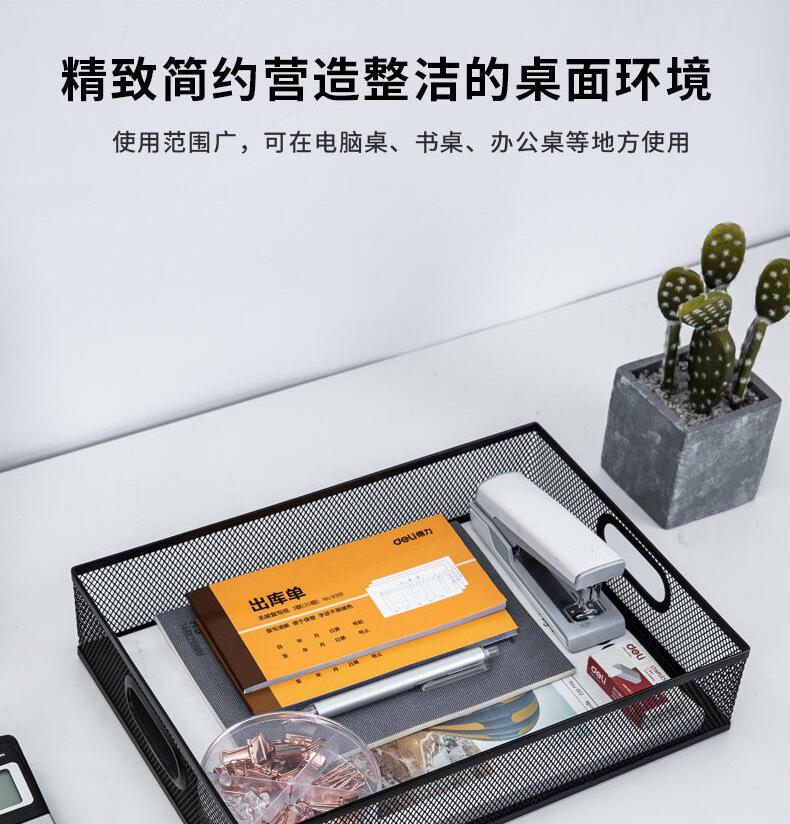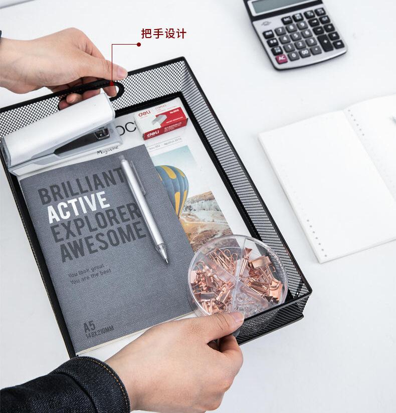Cesta de archivo de metal Deli, caja de almacenamiento de datos de escritorio de oficina, cesta de acabado, carpeta hueca, archivo azul y negro