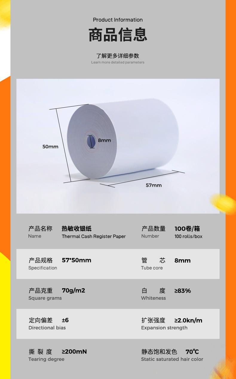 Papel térmico sin troquel 57x 50 rollo de papel para impresión para llevar grupo US 58mm papel para recibos 5750 papel para caja registradora 57*50
