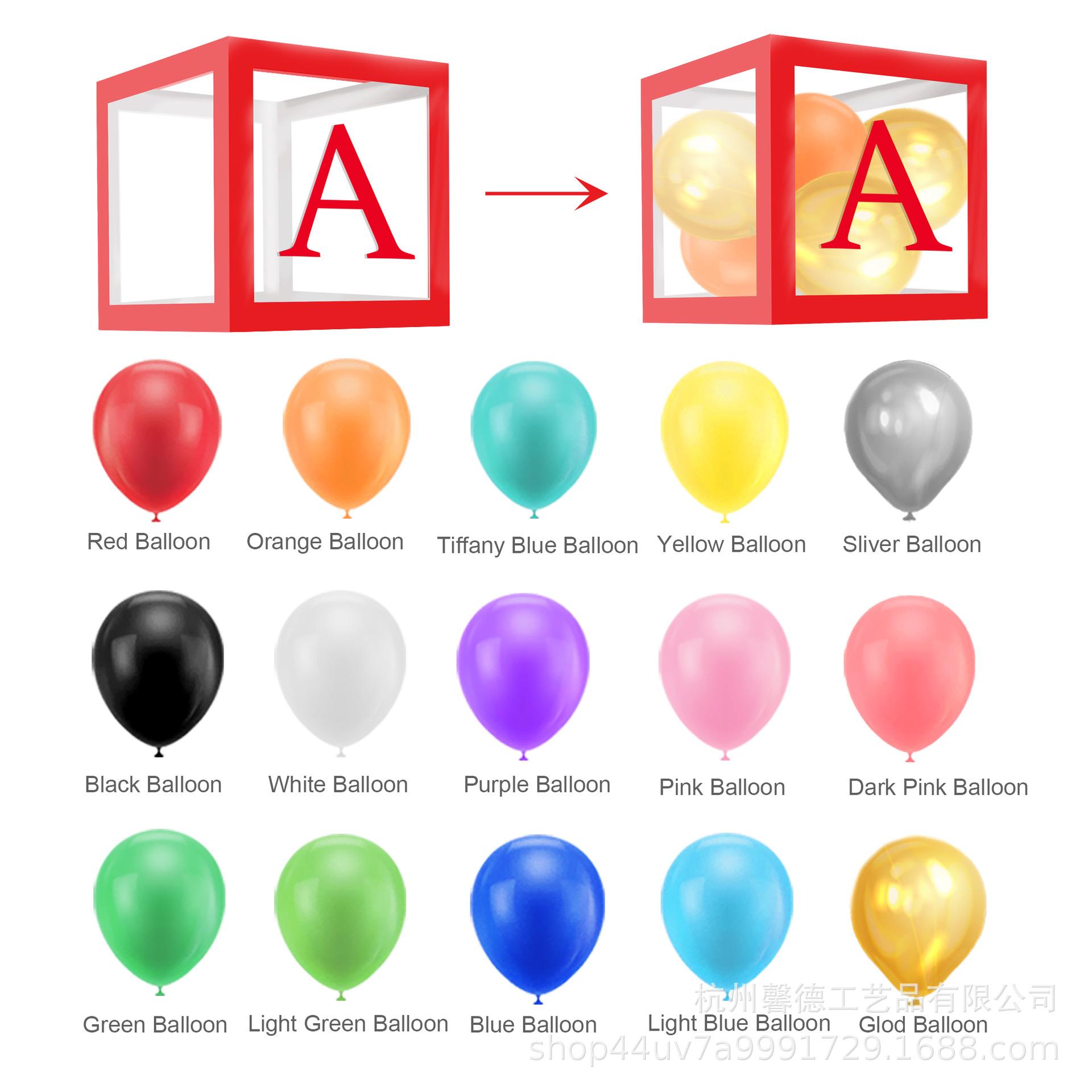 Set B: 4 cajas + pegatinas decorativas con letras + 24 globos macaron (notas de color, se pueden seleccionar hasta 3 colores)