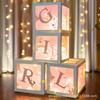 Set C: 4 cajas + pegatinas decorativas de letras + 24 globos macaron + 2 metros (20 luces) luces intermitentes
