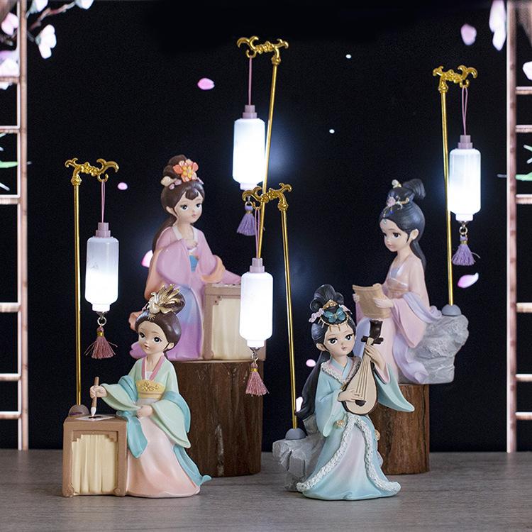 Adornos de resina con pintura y caligrafía de ajedrez Qin de Hanfu, estilo palacio retro, hechos a mano, para dormitorio, escritorio, luz de noche.
