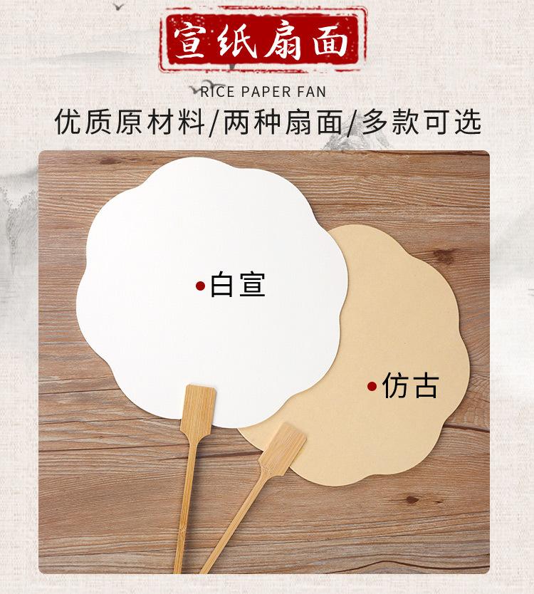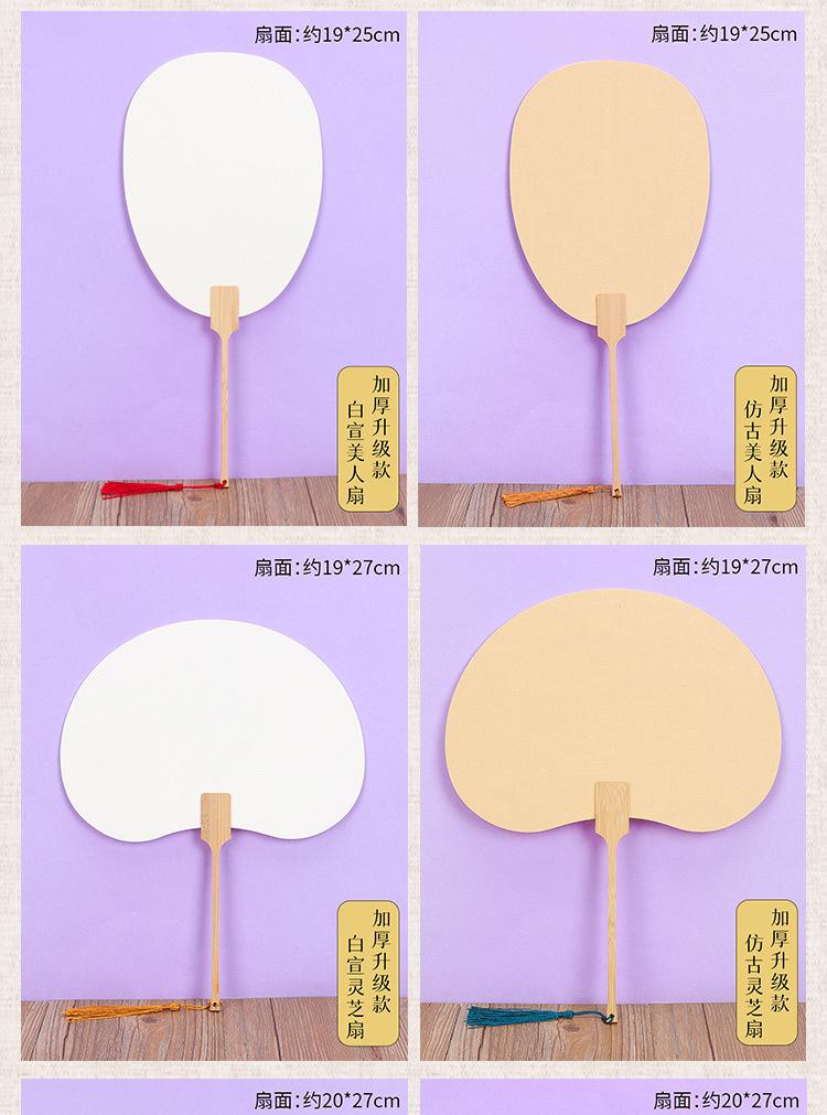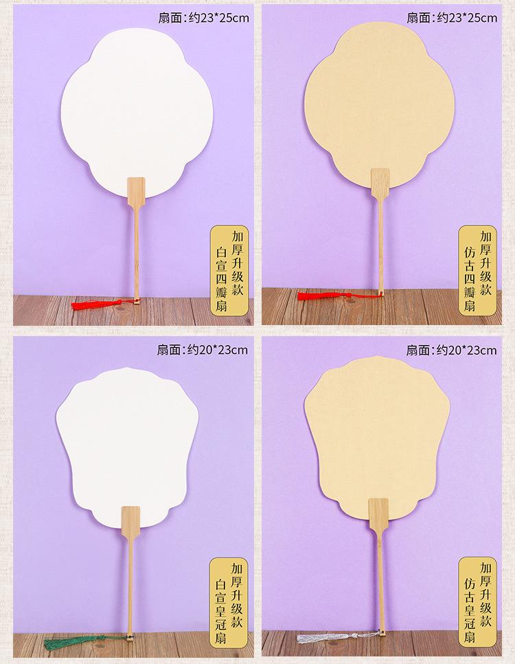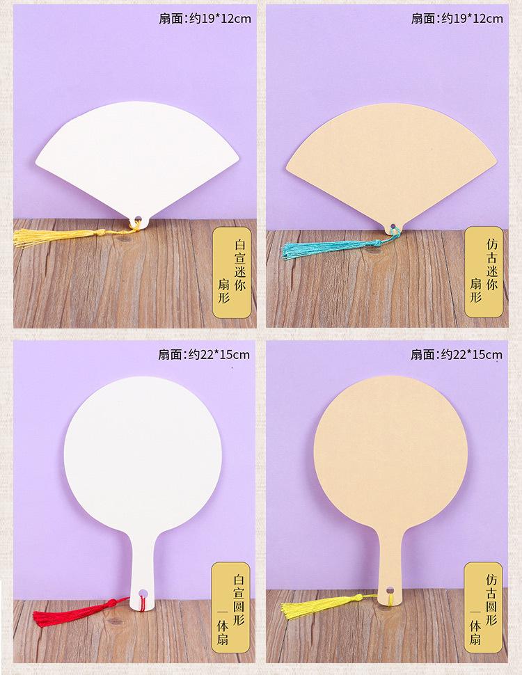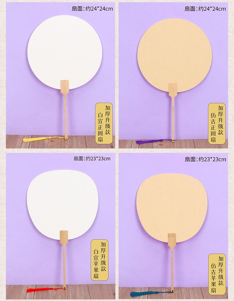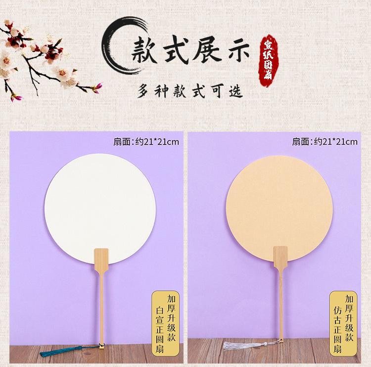 Abanico de papel de arroz en blanco engrosado, abanico de palacio de doble cara, antiguo, redondo, pintado a mano, bolsa de material de bricolaje, pintura de tinta, abanico para niños