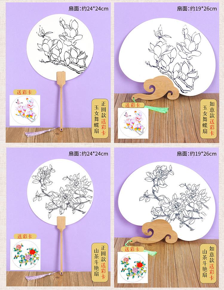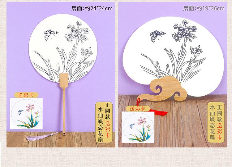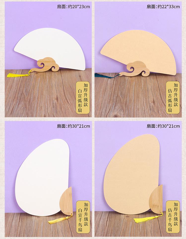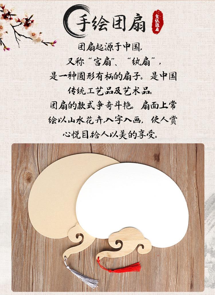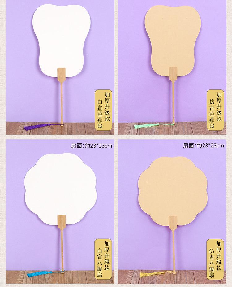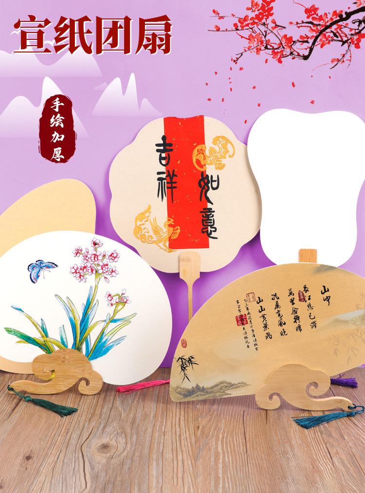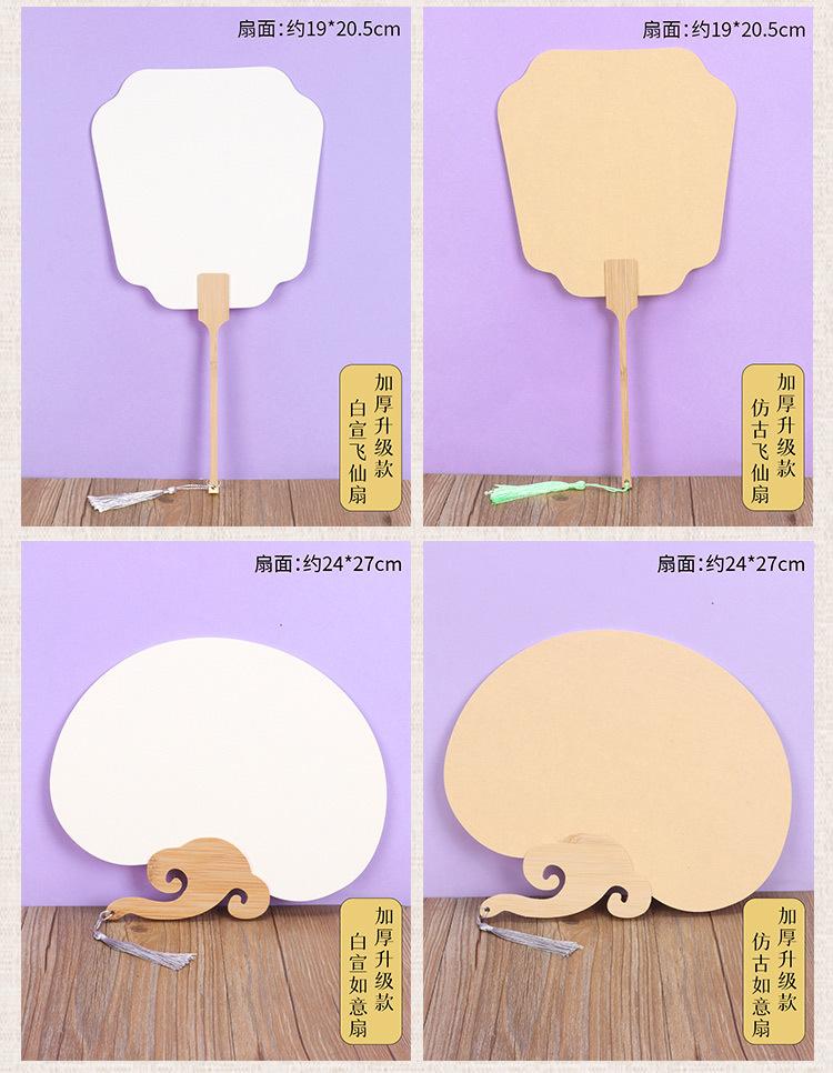 Abanico de papel de arroz en blanco engrosado, abanico de palacio de doble cara, antiguo, redondo, pintado a mano, bolsa de material de bricolaje, pintura de tinta, abanico para niños