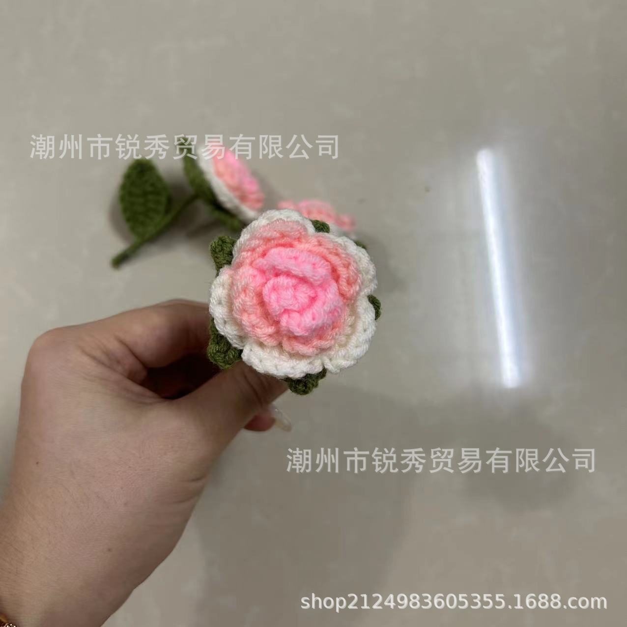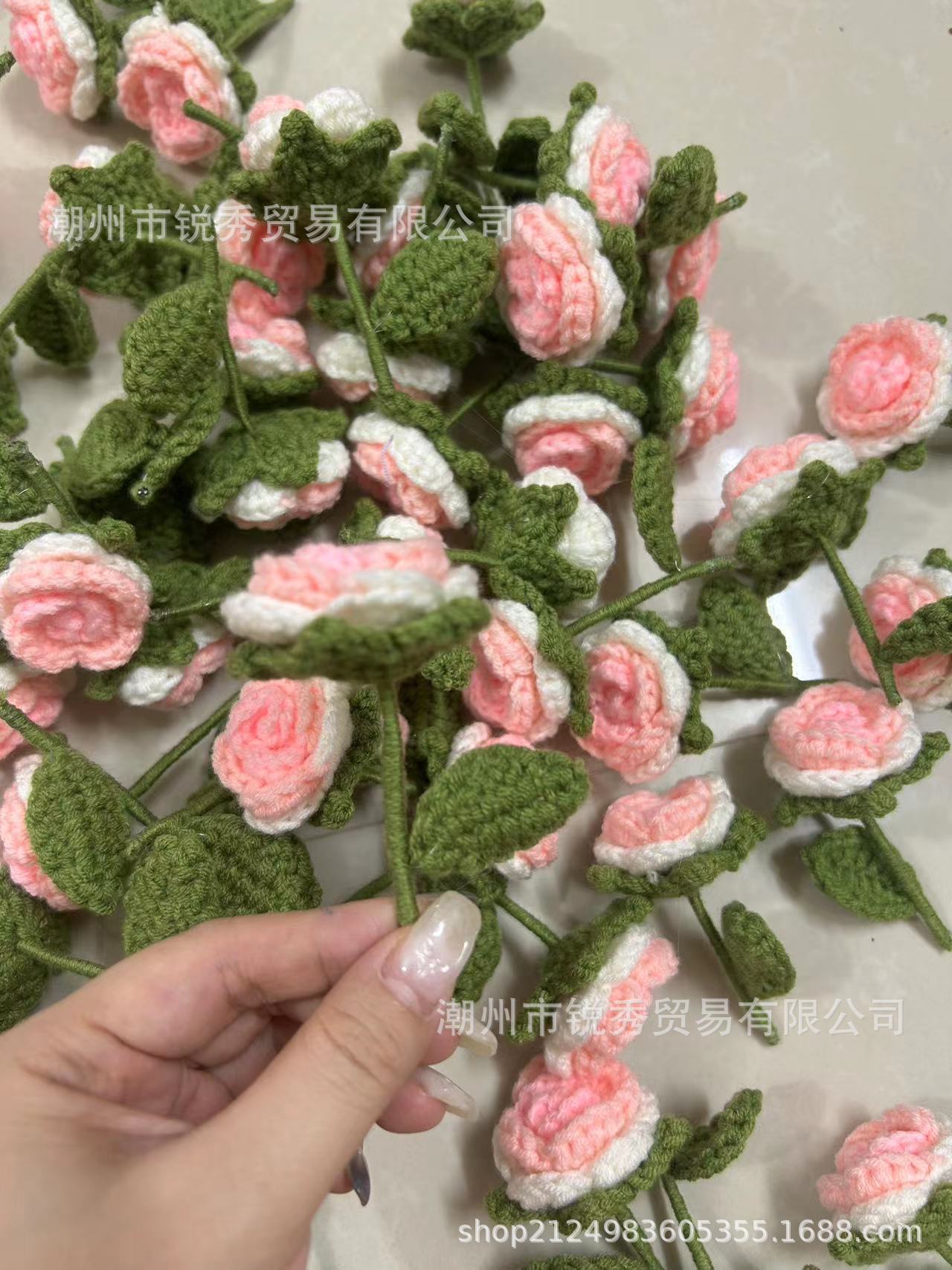 Parche de ropa de rosas pequeñas tejidas a mano, accesorios de flores pequeñas en maceta de verano, flores tridimensionales