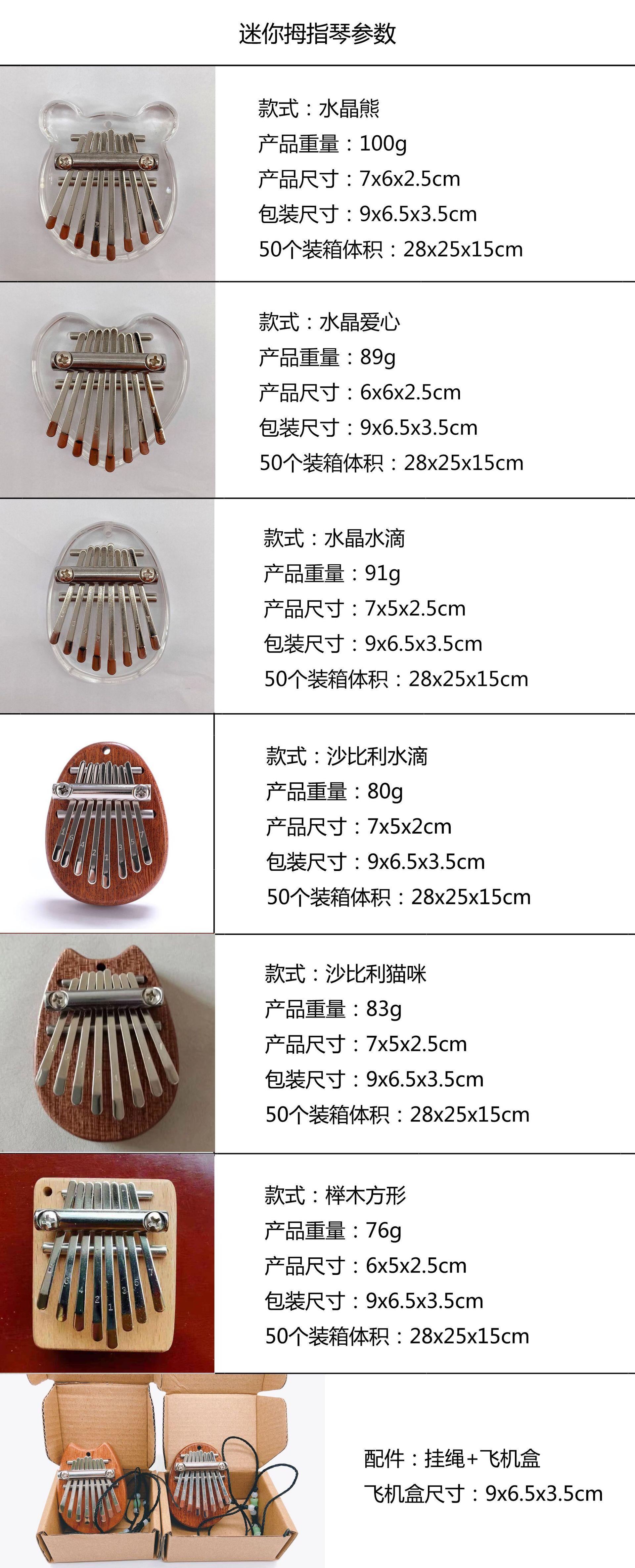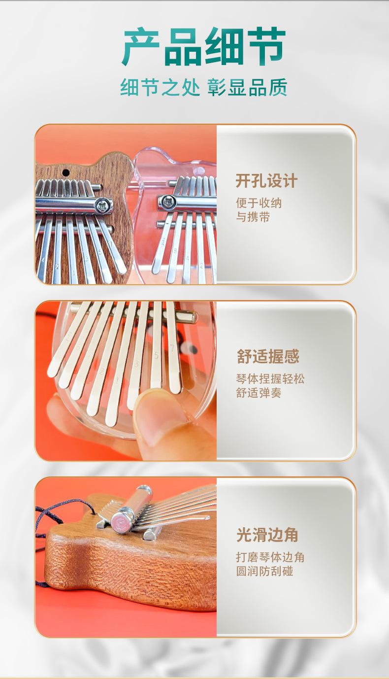 Instrumento Musical Transfronterizo Mini Piano de Pulgar Kalimba de 8 Tonos Madera Sólida Cristal Transparente Piano de Cinco Dedos Portátil Artesanal Piano de Dedo