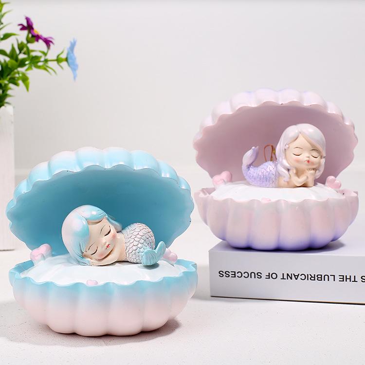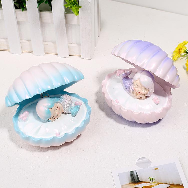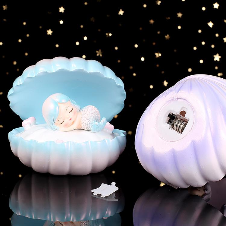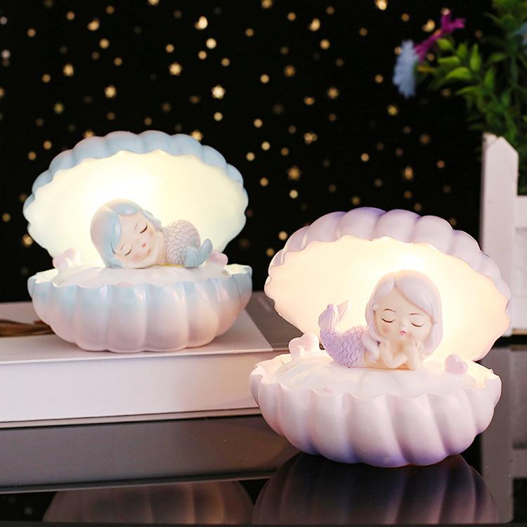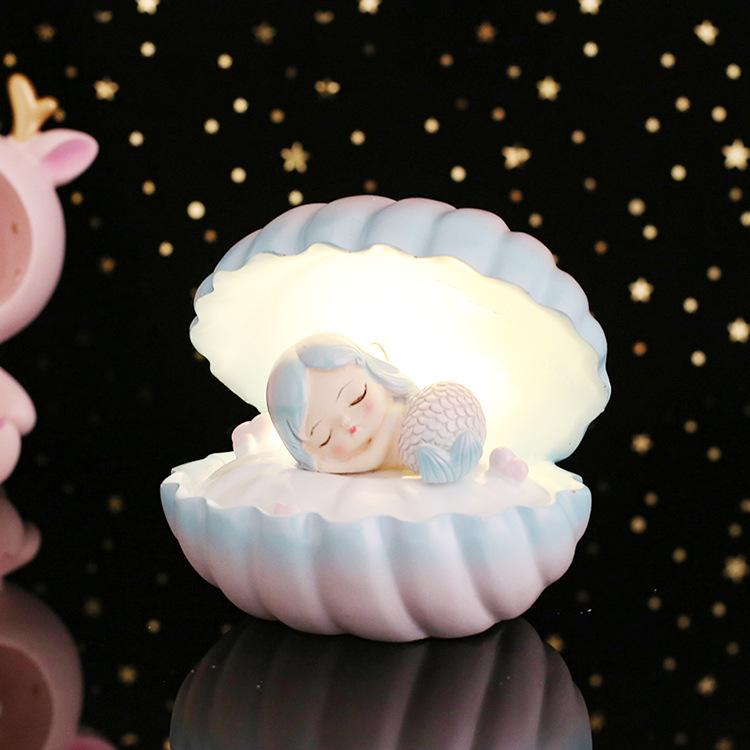 Lámpara de estrella con forma de concha de sirena y corazón para niña, decoración del hogar, decoración de escritorio, regalo de cumpleaños para estudiantes, regalo de resina