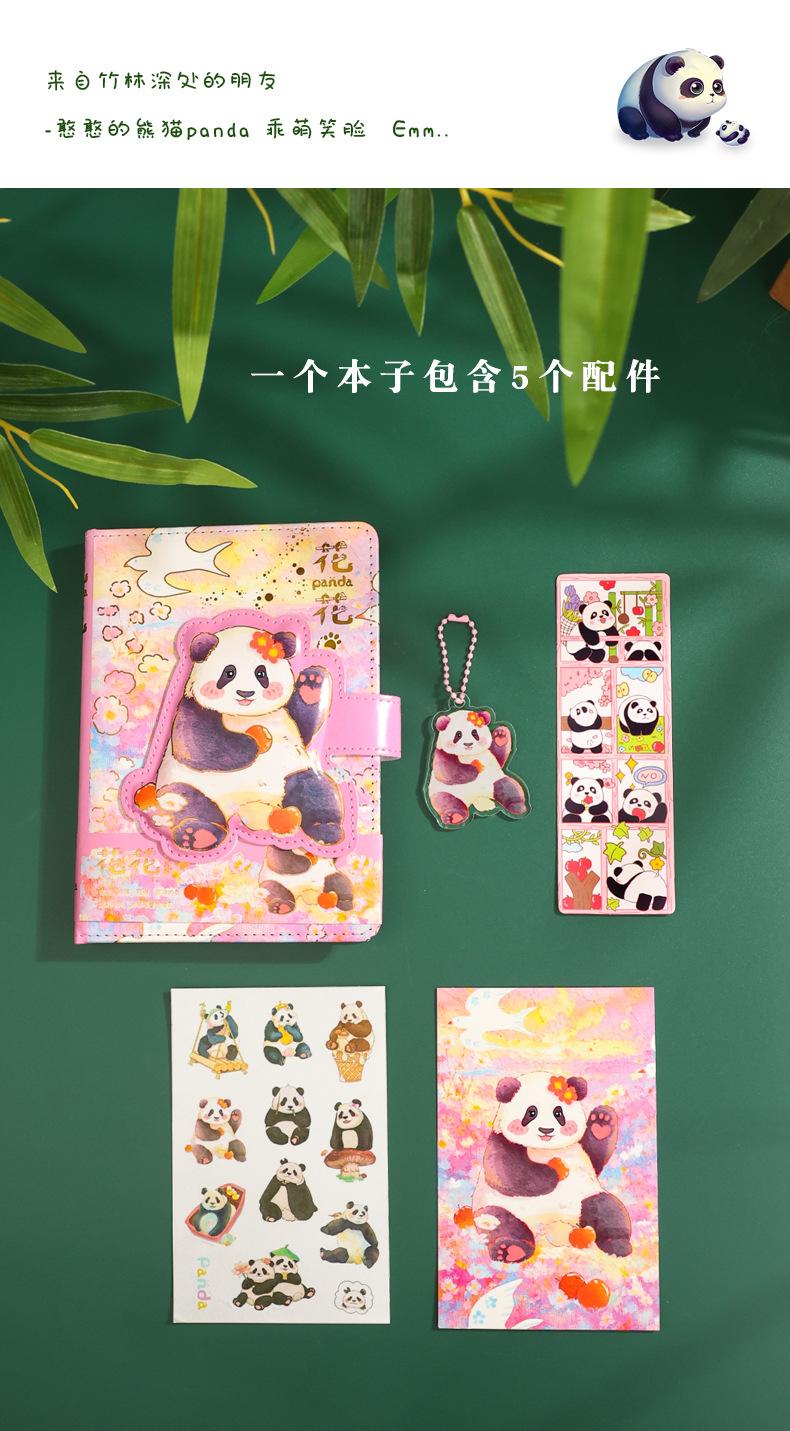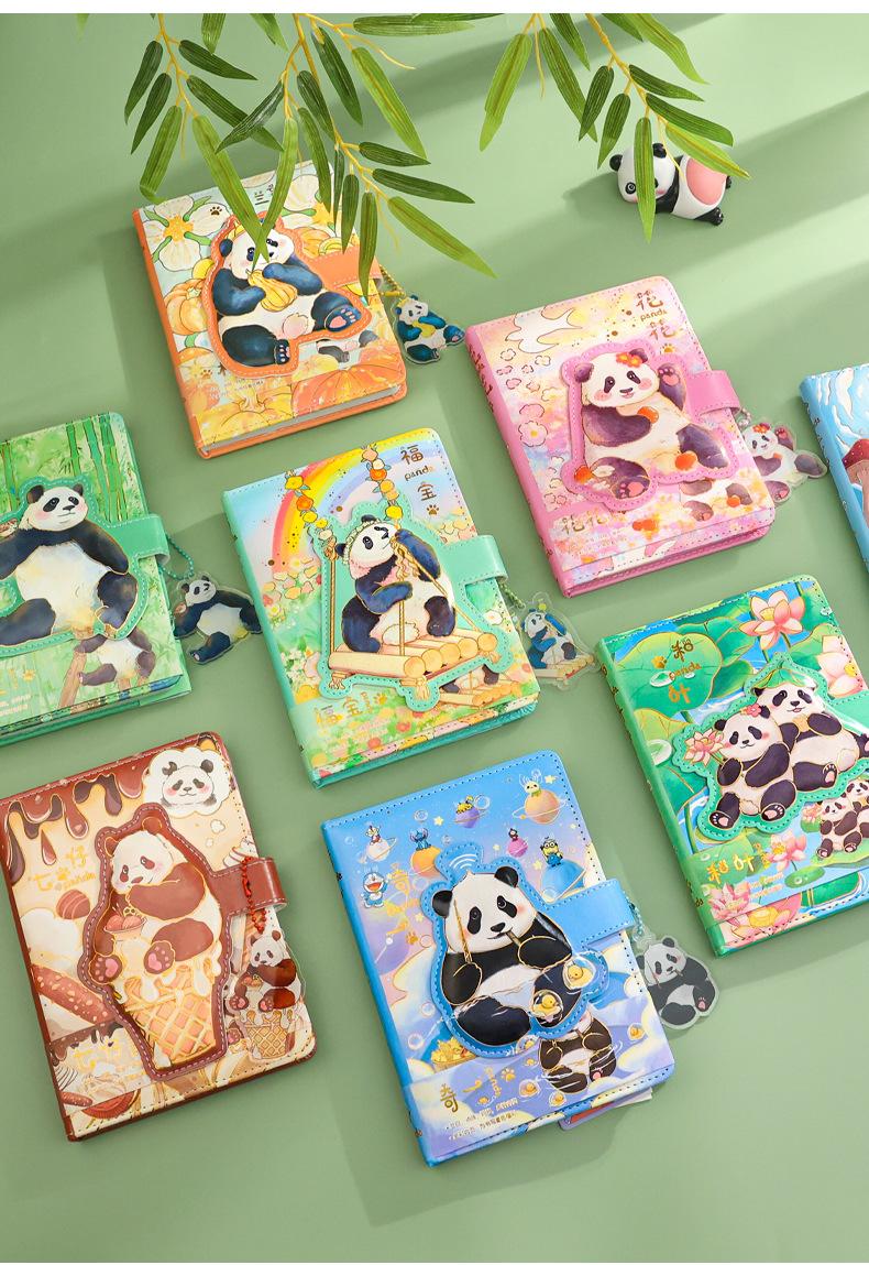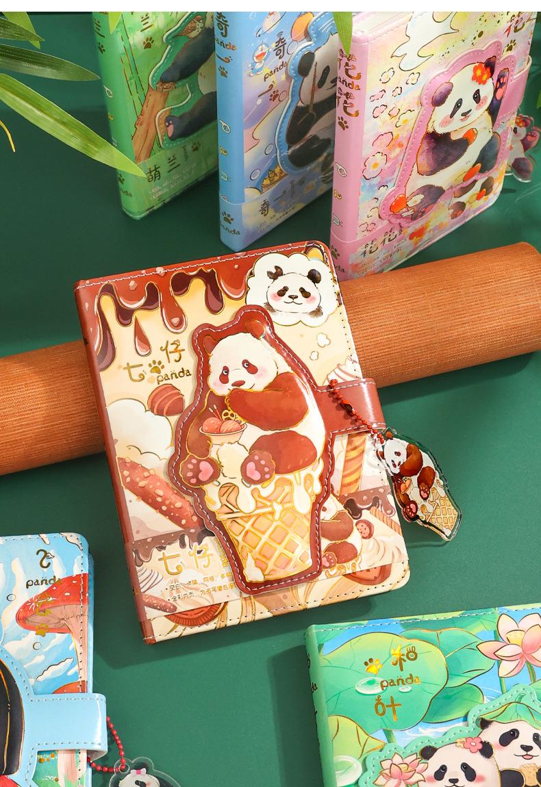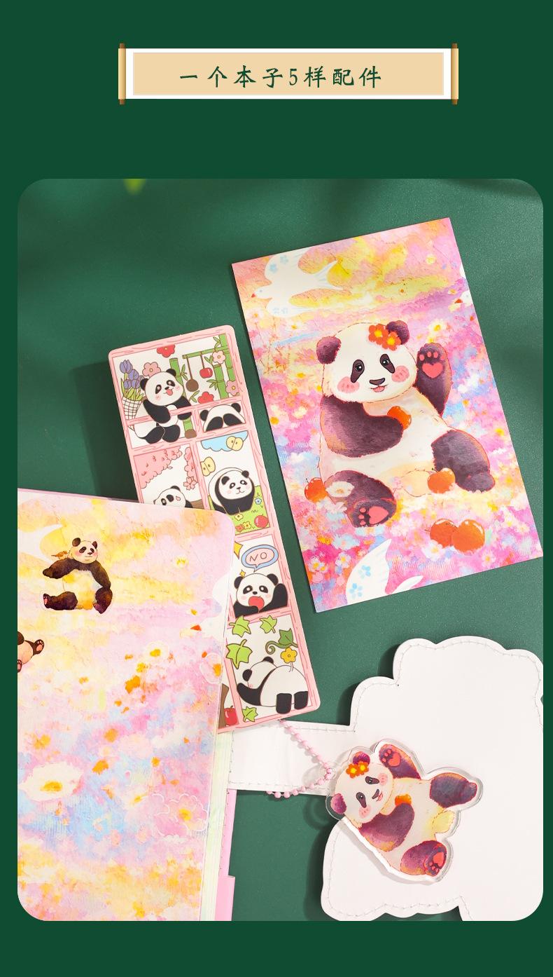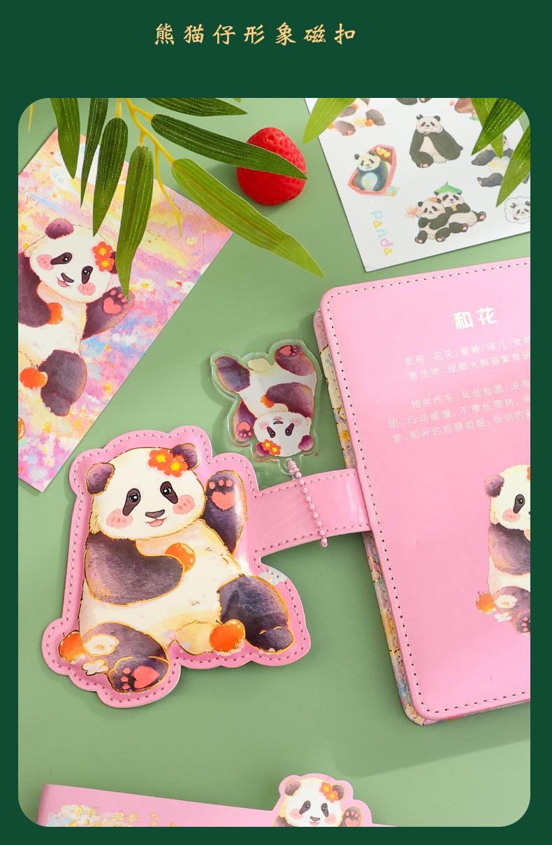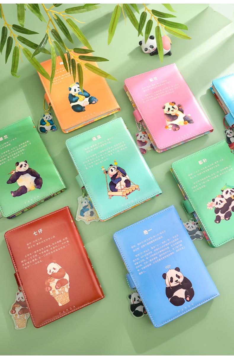 Cuaderno con hebilla magnética de panda de PU, lindo cuaderno de dibujos animados para colorear para estudiantes, libro de mano con marcapáginas de postal, tarjeta adhesiva