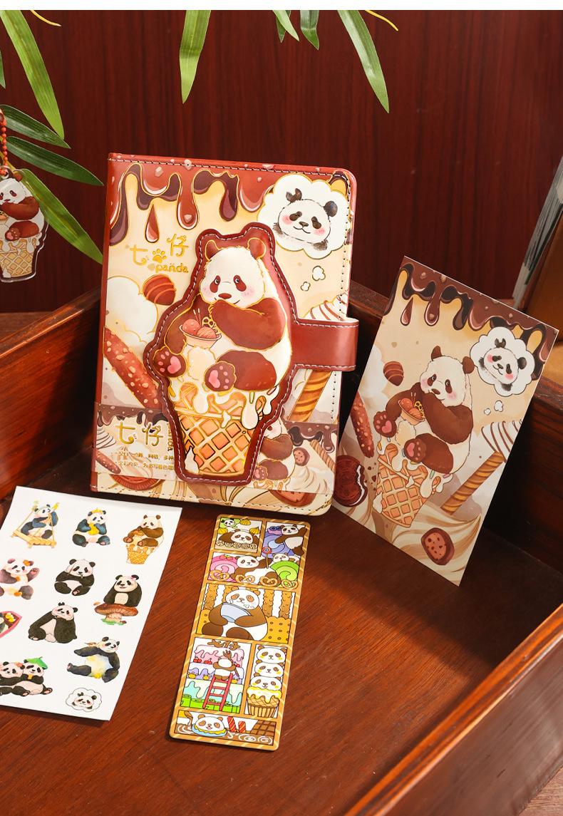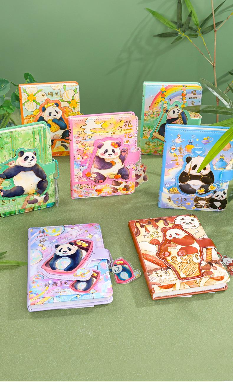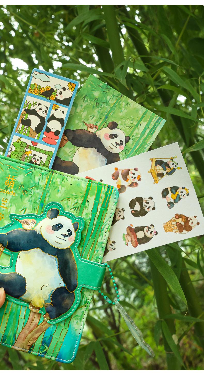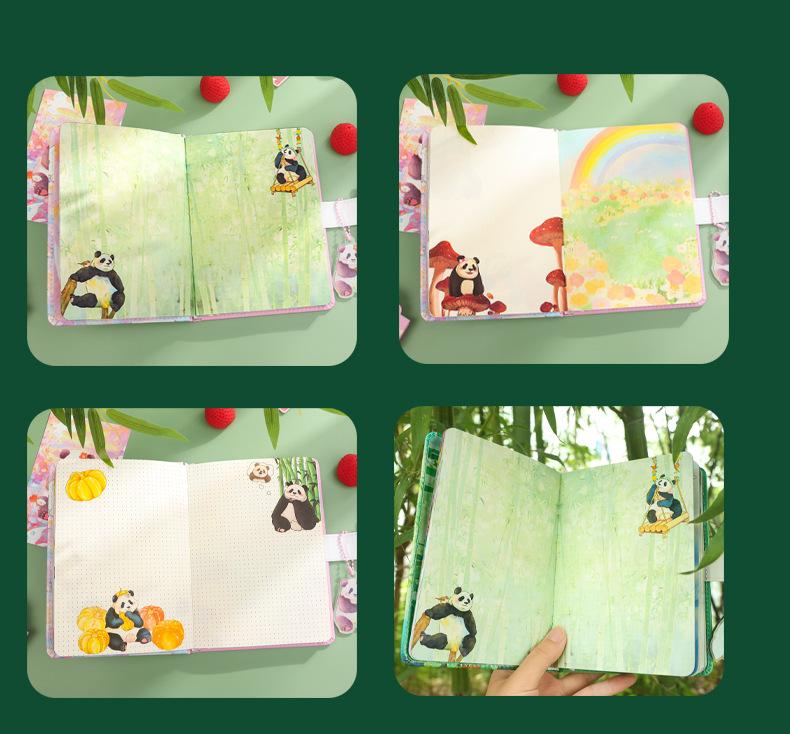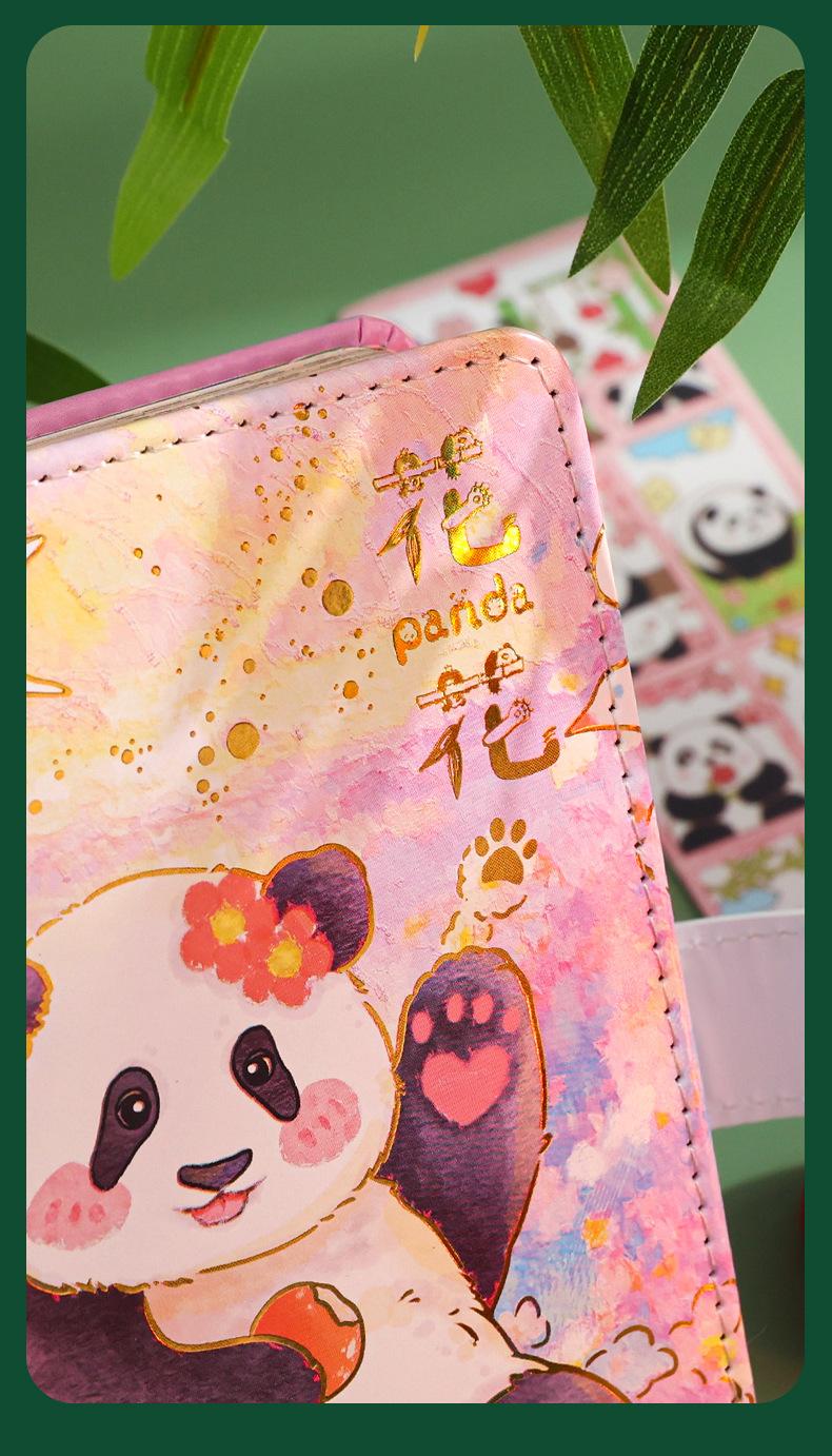 Cuaderno con hebilla magnética de panda de PU, lindo cuaderno de dibujos animados para colorear para estudiantes, libro de mano con marcapáginas de postal, tarjeta adhesiva