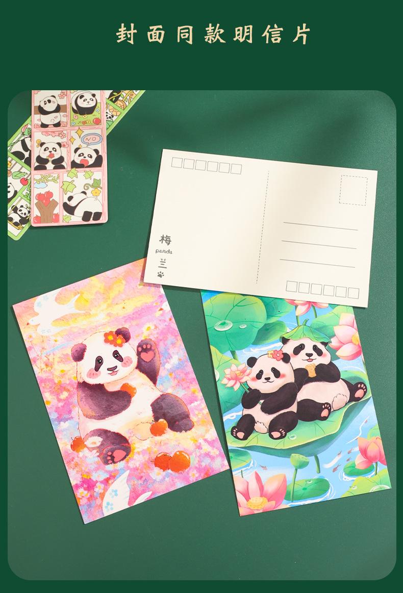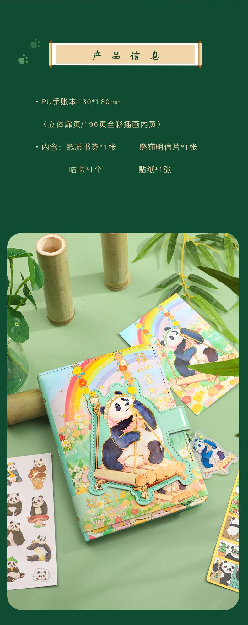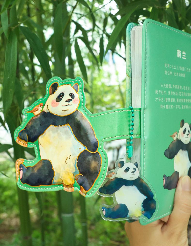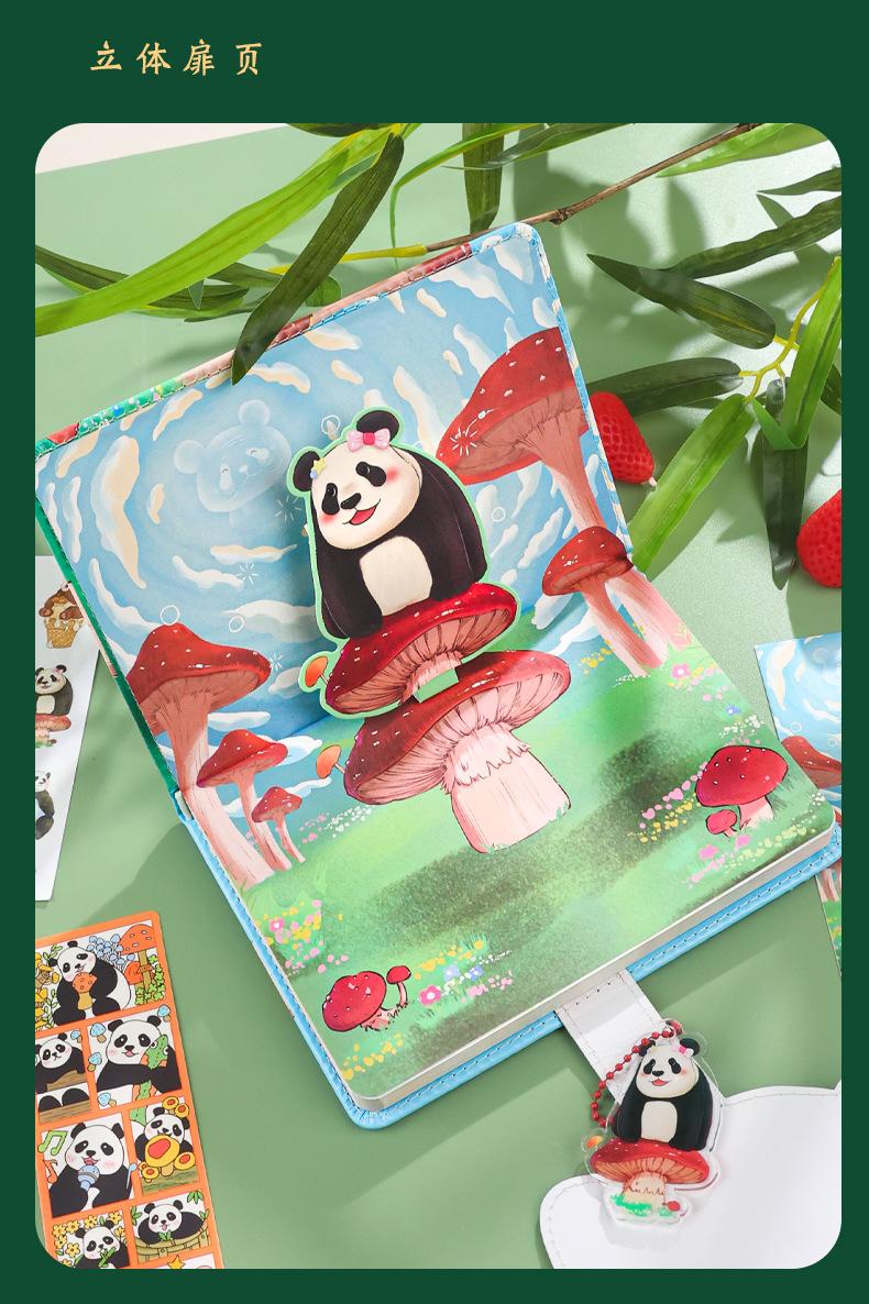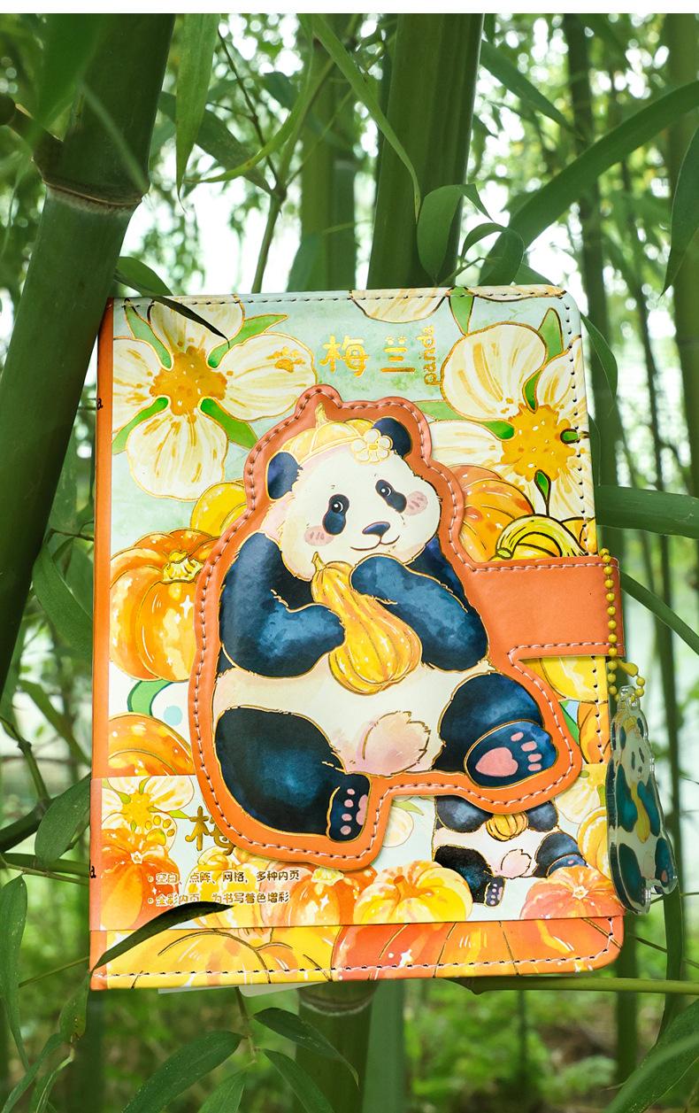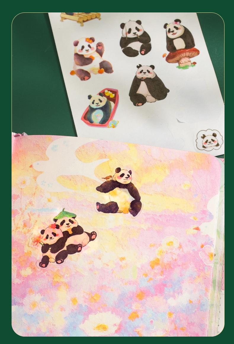 Cuaderno con hebilla magnética de panda de PU, lindo cuaderno de dibujos animados para colorear para estudiantes, libro de mano con marcapáginas de postal, tarjeta adhesiva