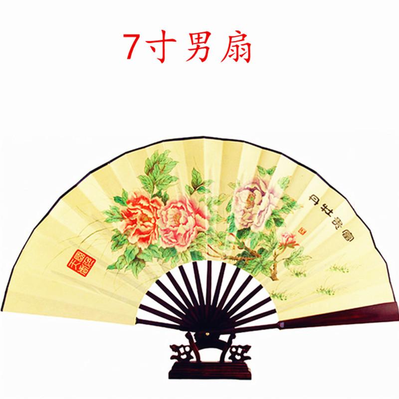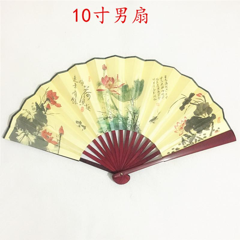 Abanico de seda antiguo de 7, 8 y 10 pulgadas, abanico plegable de bambú, abanico de seda para hombre, abanico de seda grande