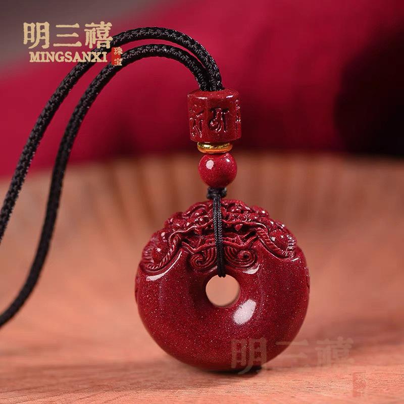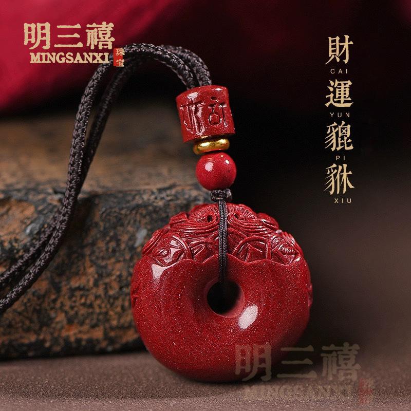 Colgante de Cordón con Hebilla de Seguridad Pixiu de Cinabrio Amuleto Animal del Año para Atraer Riqueza y Transferir Arena Dorada Púrpura Colgante Pequeño Regalo